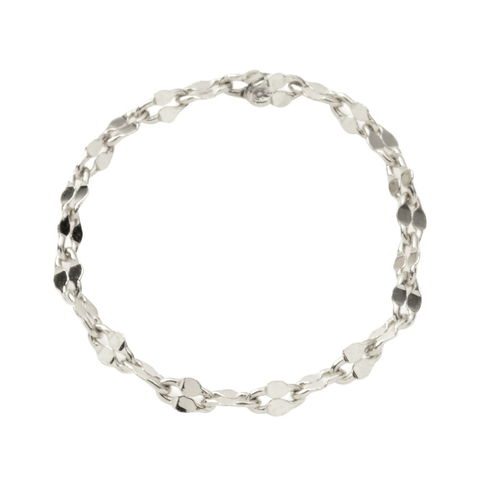 光を受けて煌めく個性的なペタルチェーンを連ねたリング。