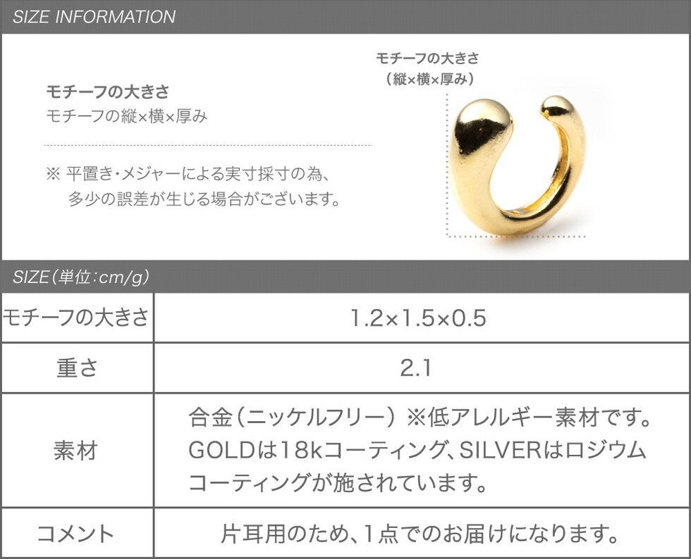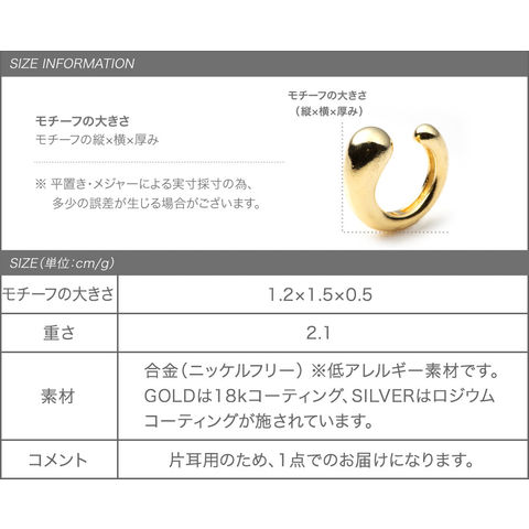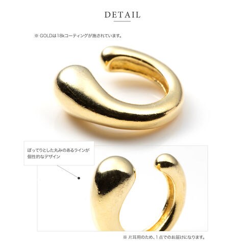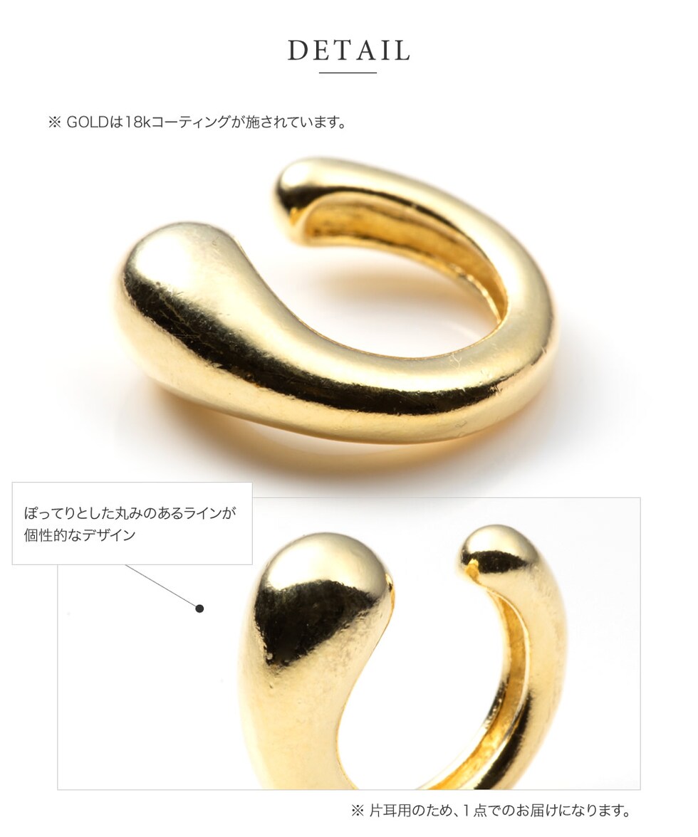 ぽってりとした丸みのあるラインが個性的な片耳用イヤーカフ。