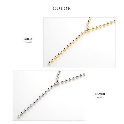 直径が異なる2つのデザインと長さが選べる、シンプルなボールチェーンのY字ネックレス。