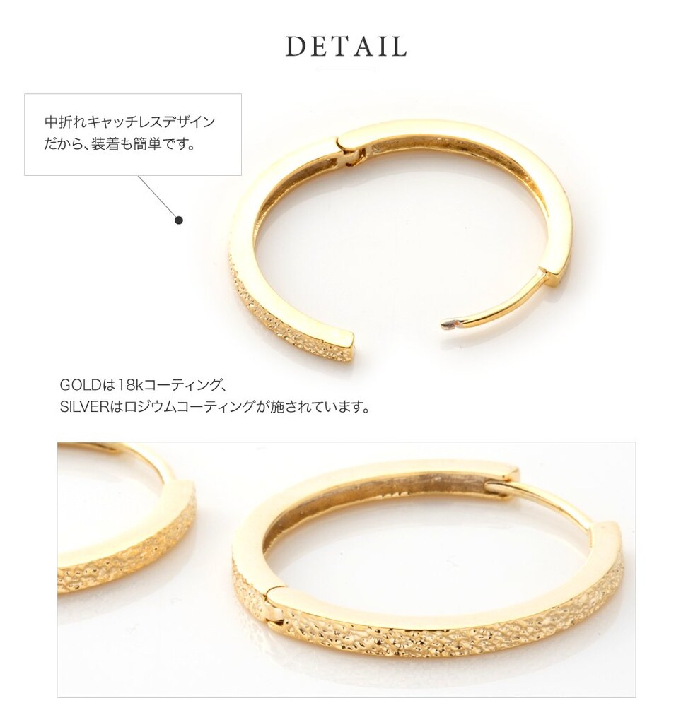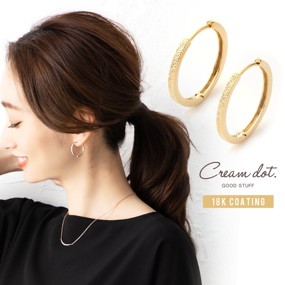 ピアス 金属アレルギー ニッケルフリー レディース フープ 中折れ キャッチレス リング 開閉式 スターダスト加工 メタル cream dot ゆうパケット [シルバー_ピアス]
