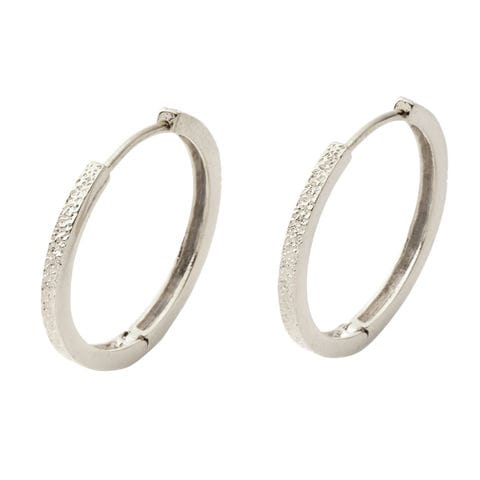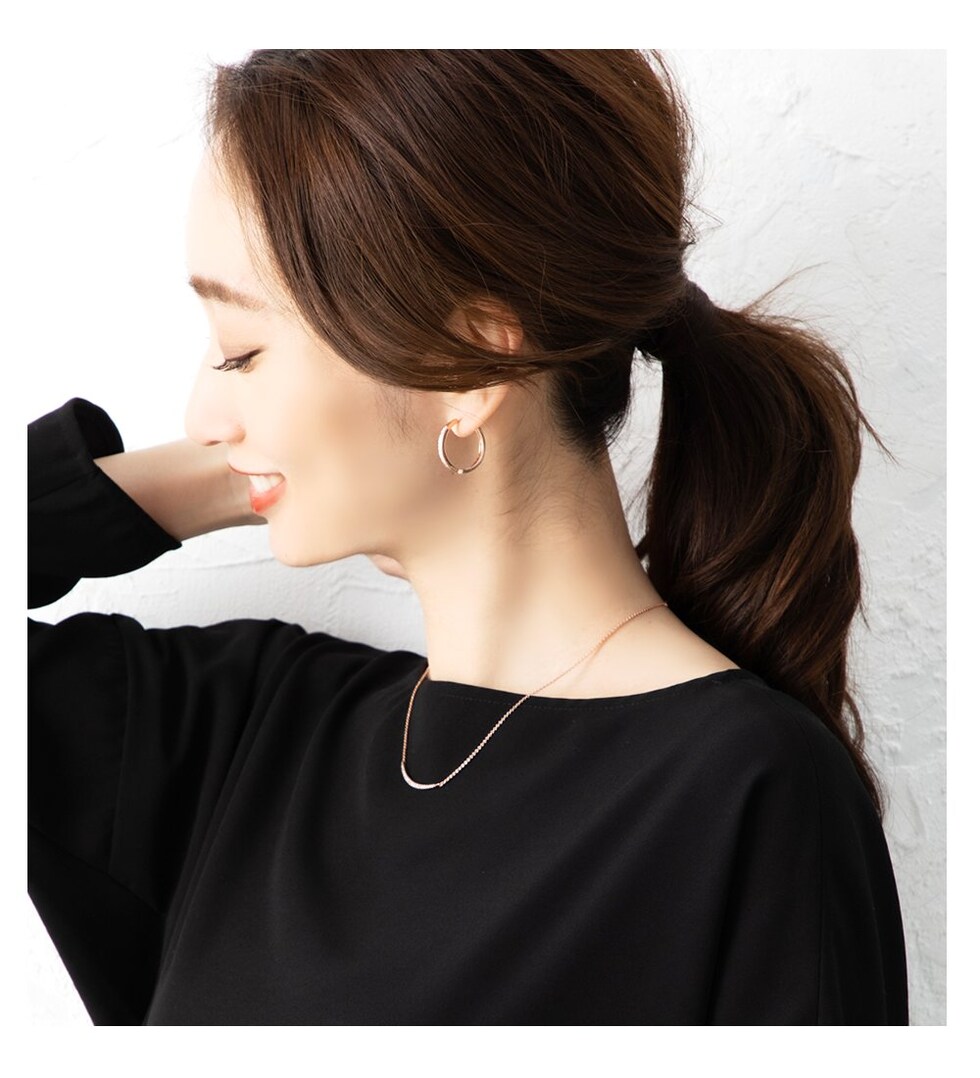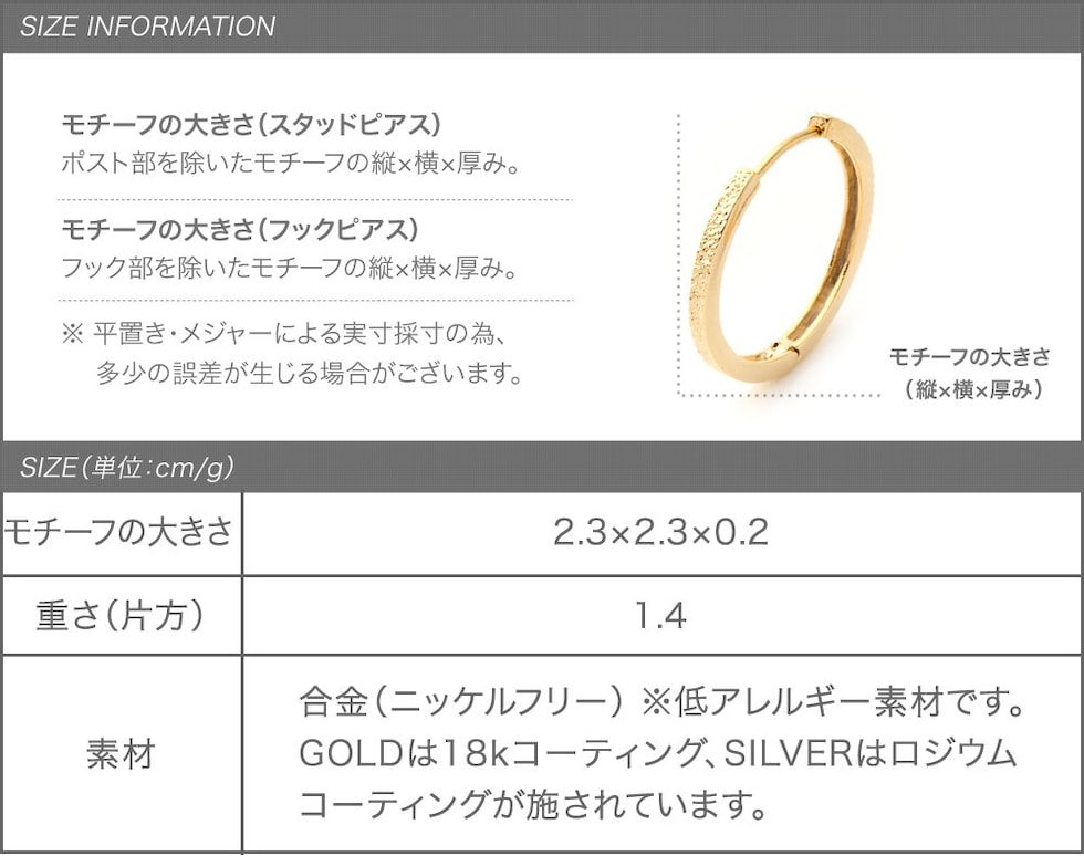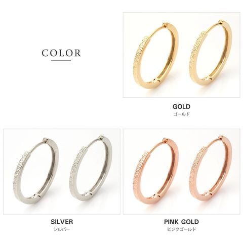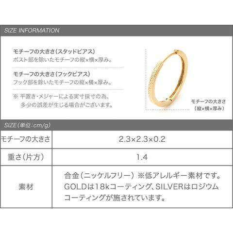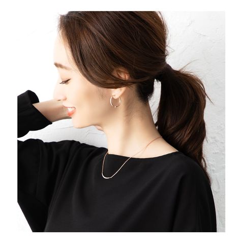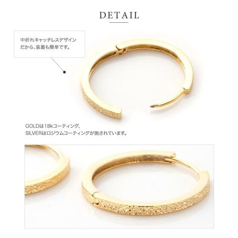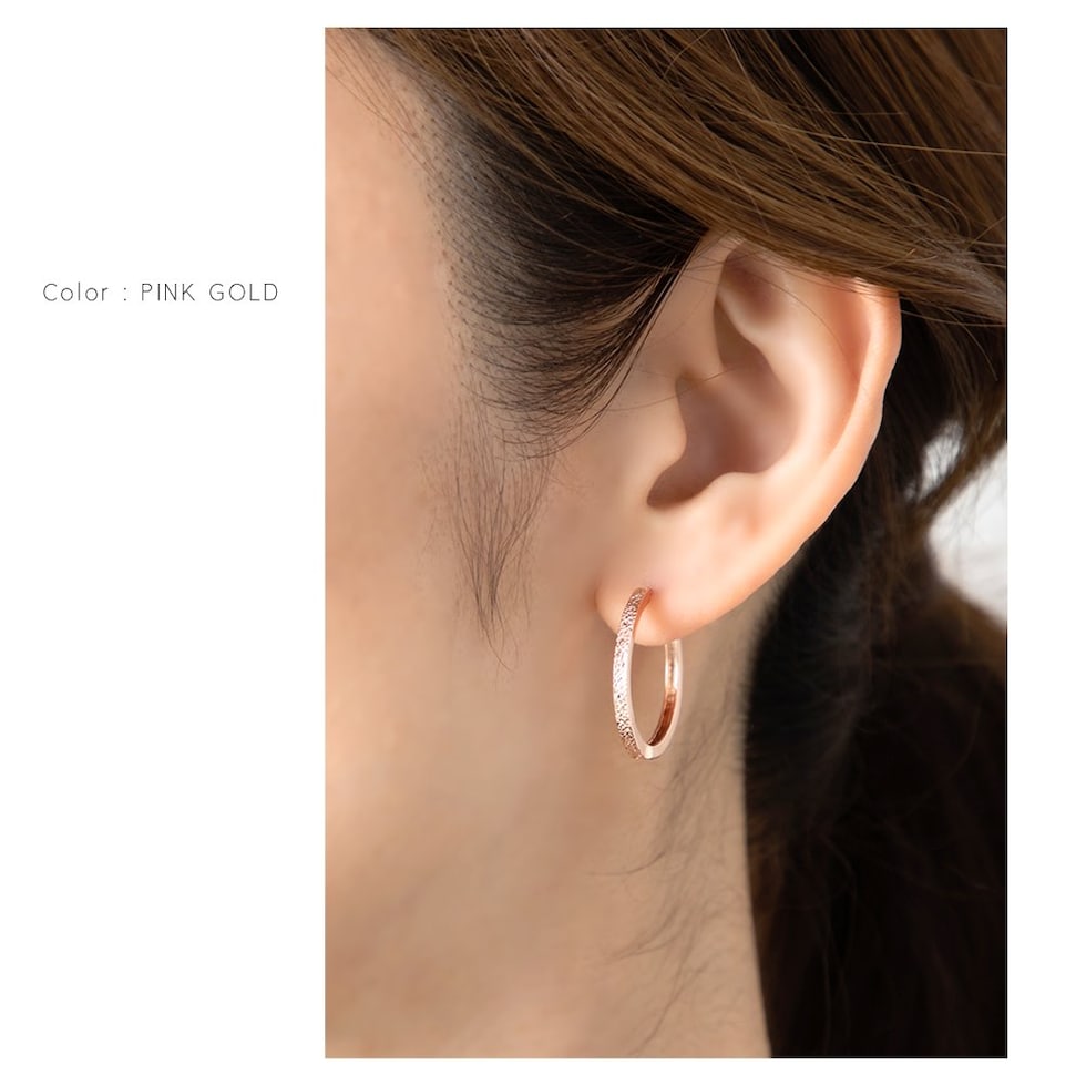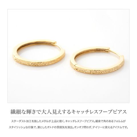 スターダスト加工を施したメタルが上品に煌く、キャッチレスフープピアス。