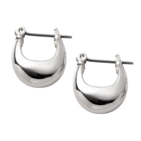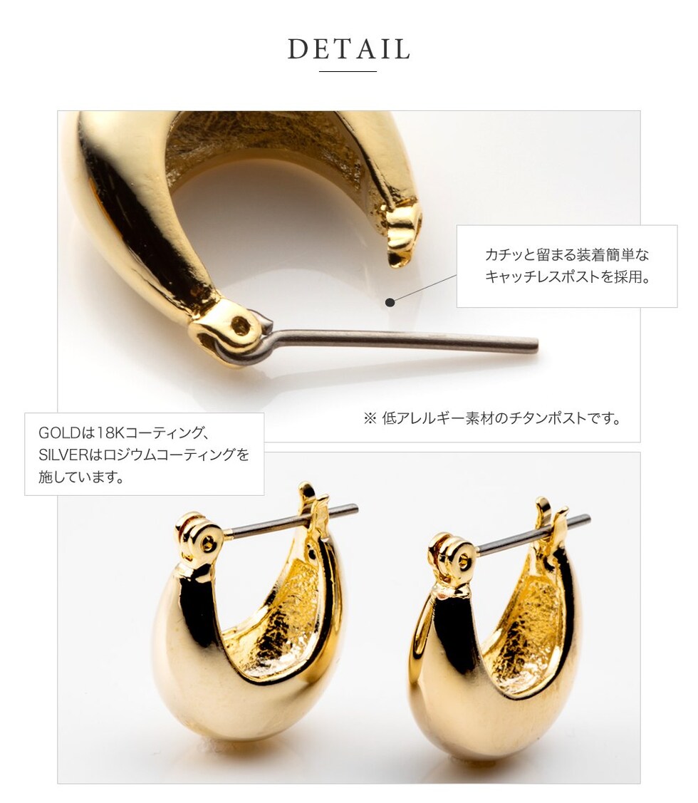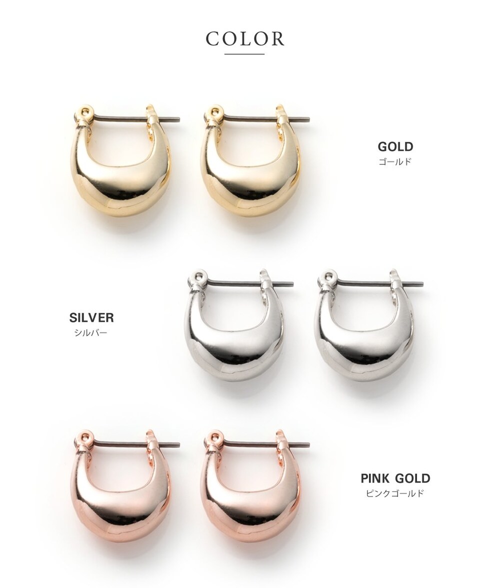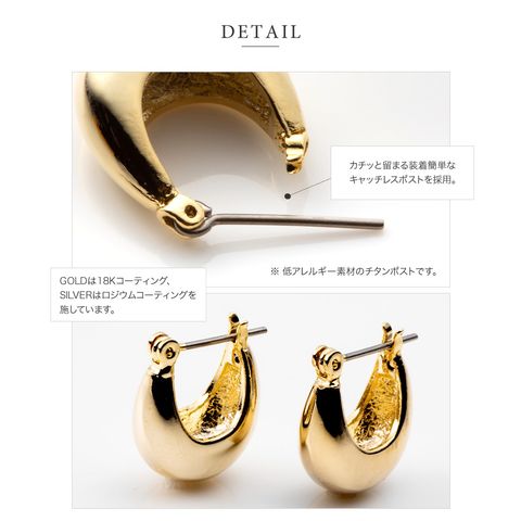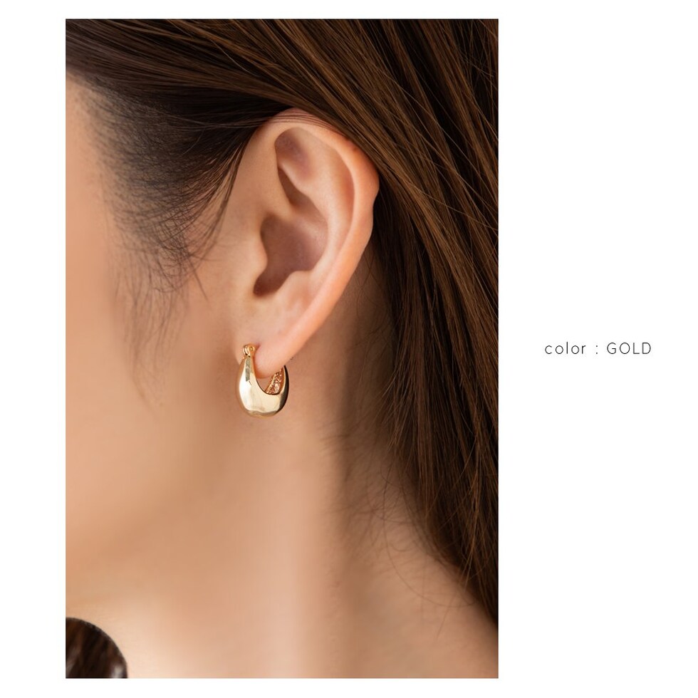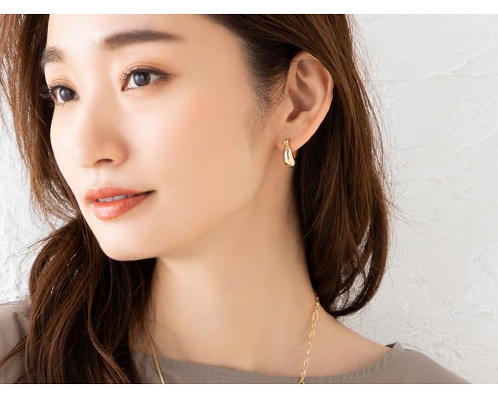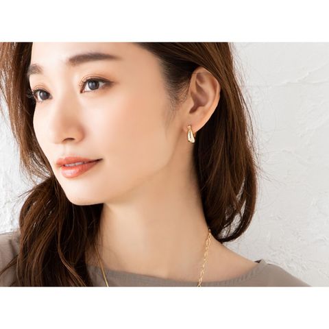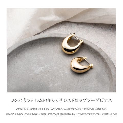 メタルドロップが艶めくキャッチレスフープピアス。