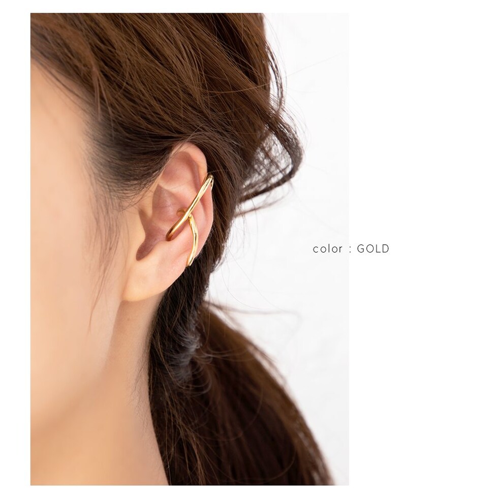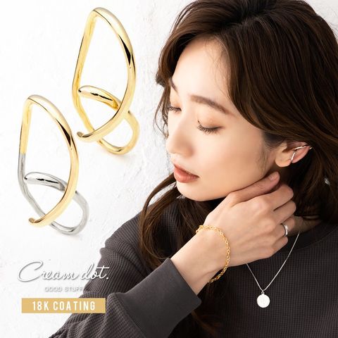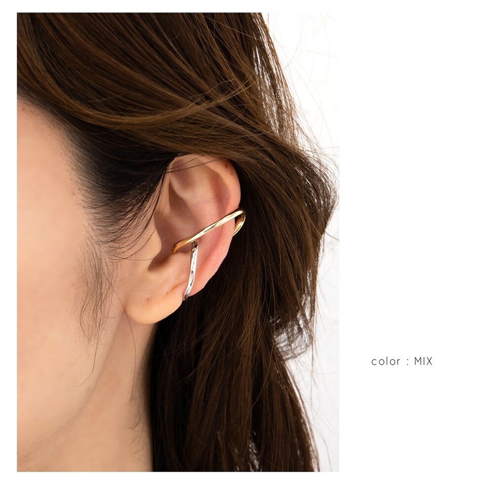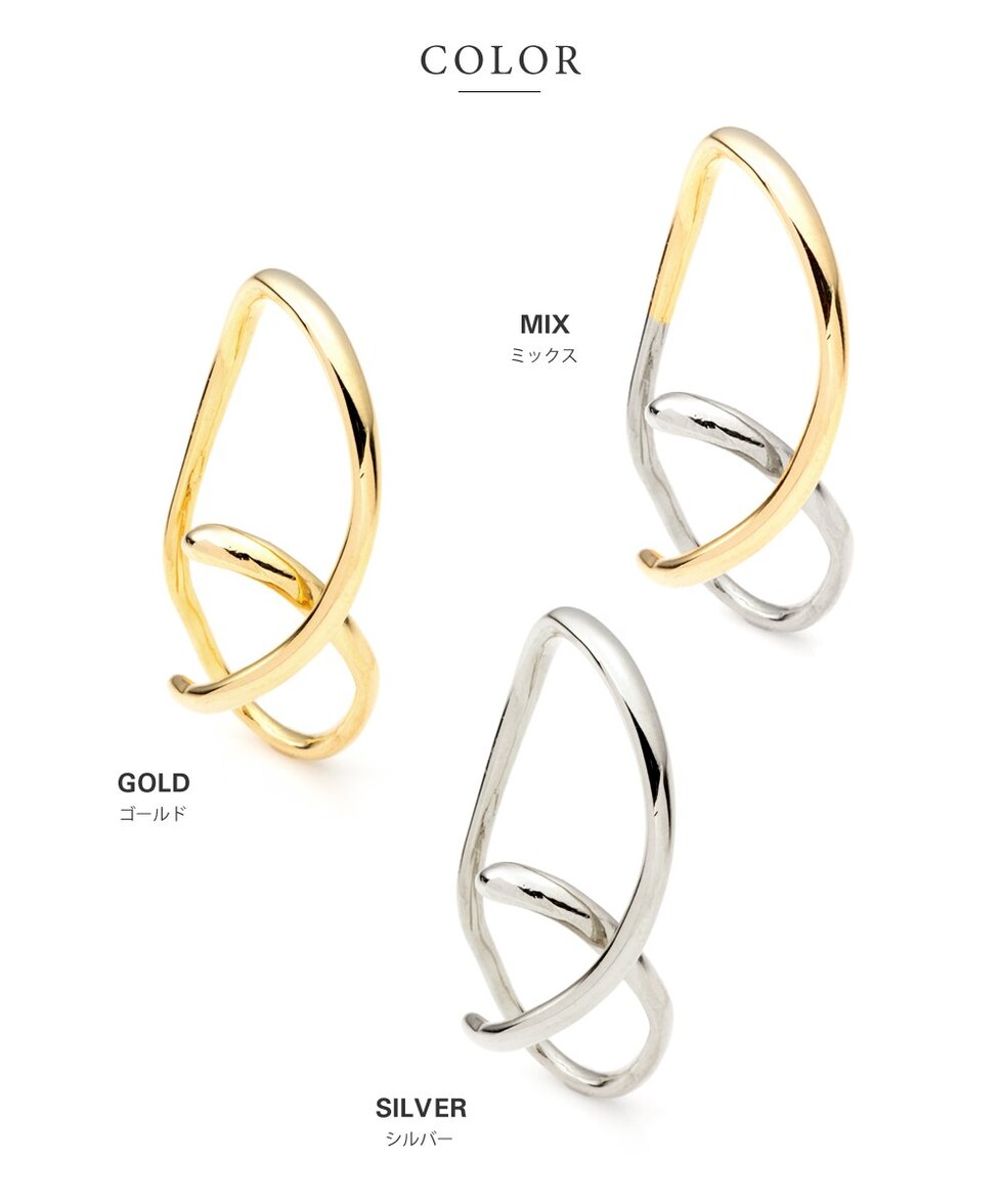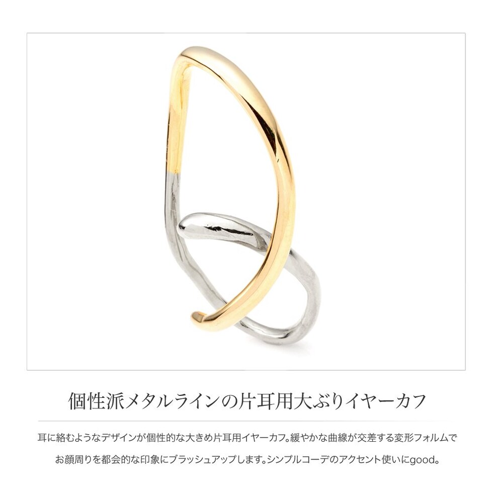 イヤーカフ 金属アレルギー ニッケルフリー レディース イヤーカフ イヤカフ 片耳用 メタル 大ぶり バイカラー コンビカラー 変形 クロス cream dot ゆうパケット [シルバー_フリーサイズ]