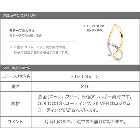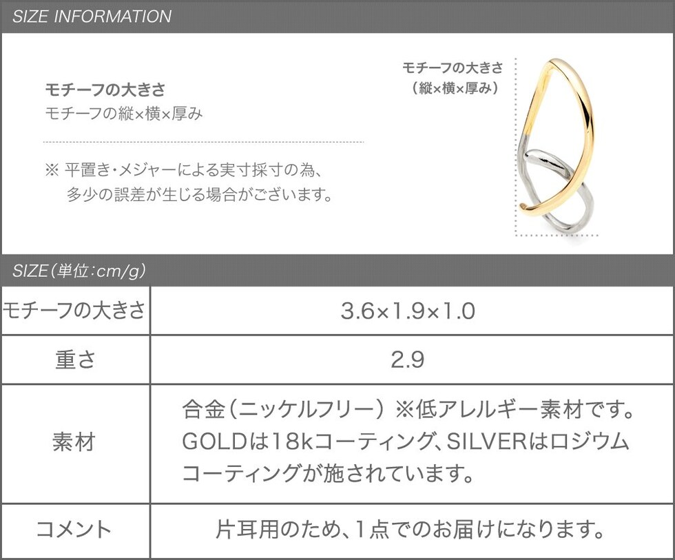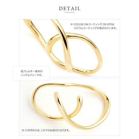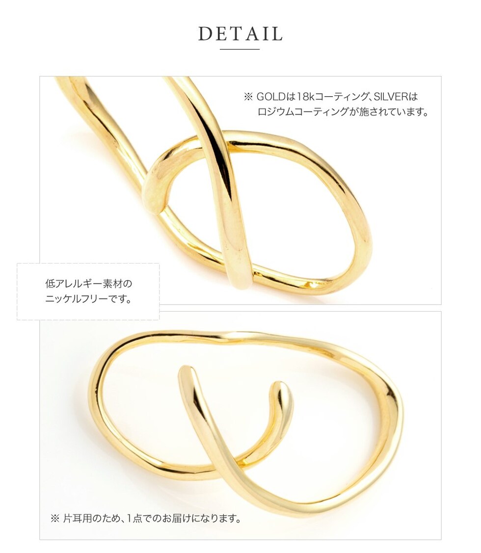 耳に絡むようなデザインが個性的な大きめ片耳用イヤーカフ。