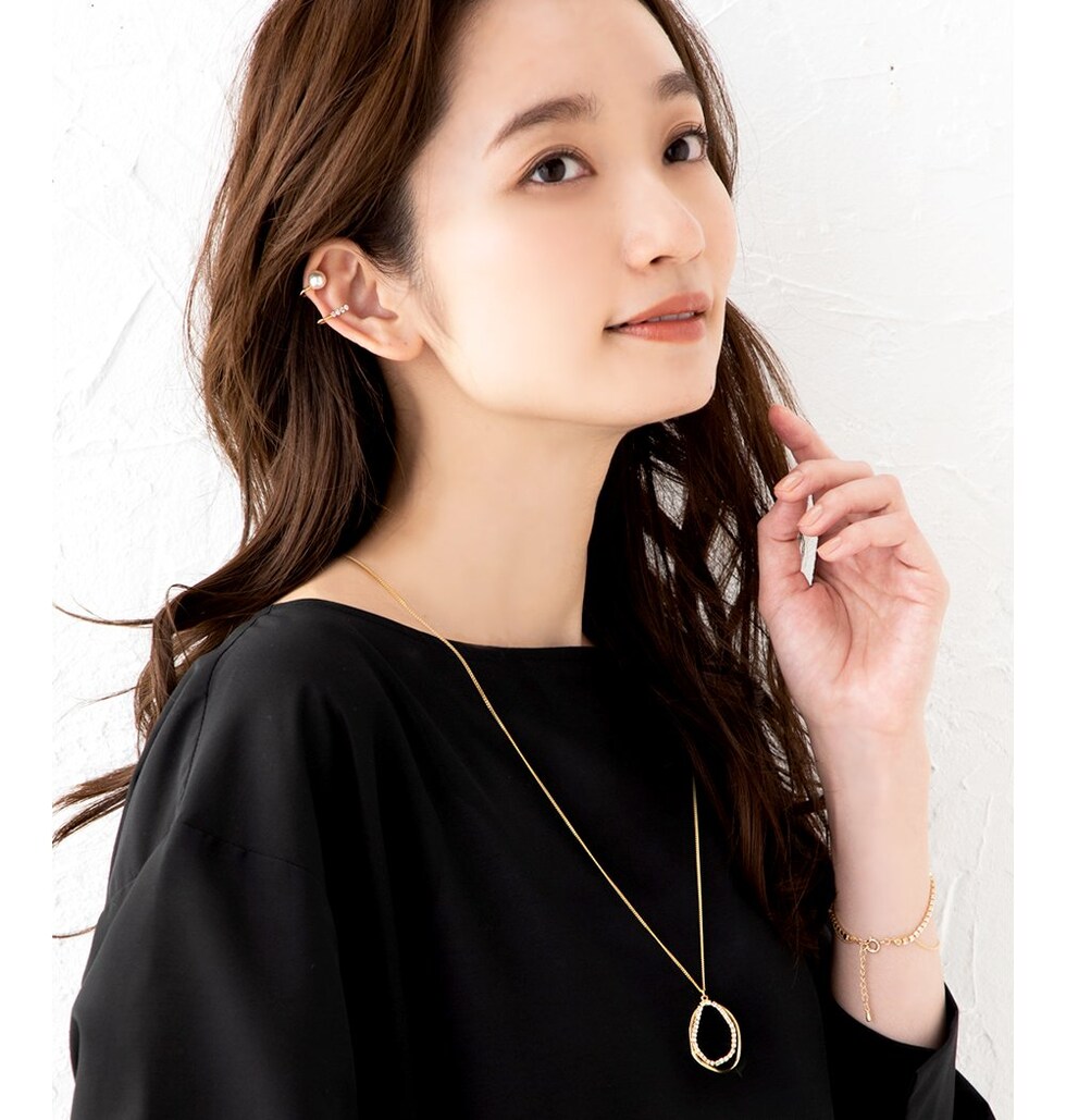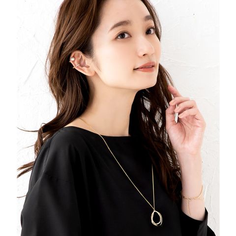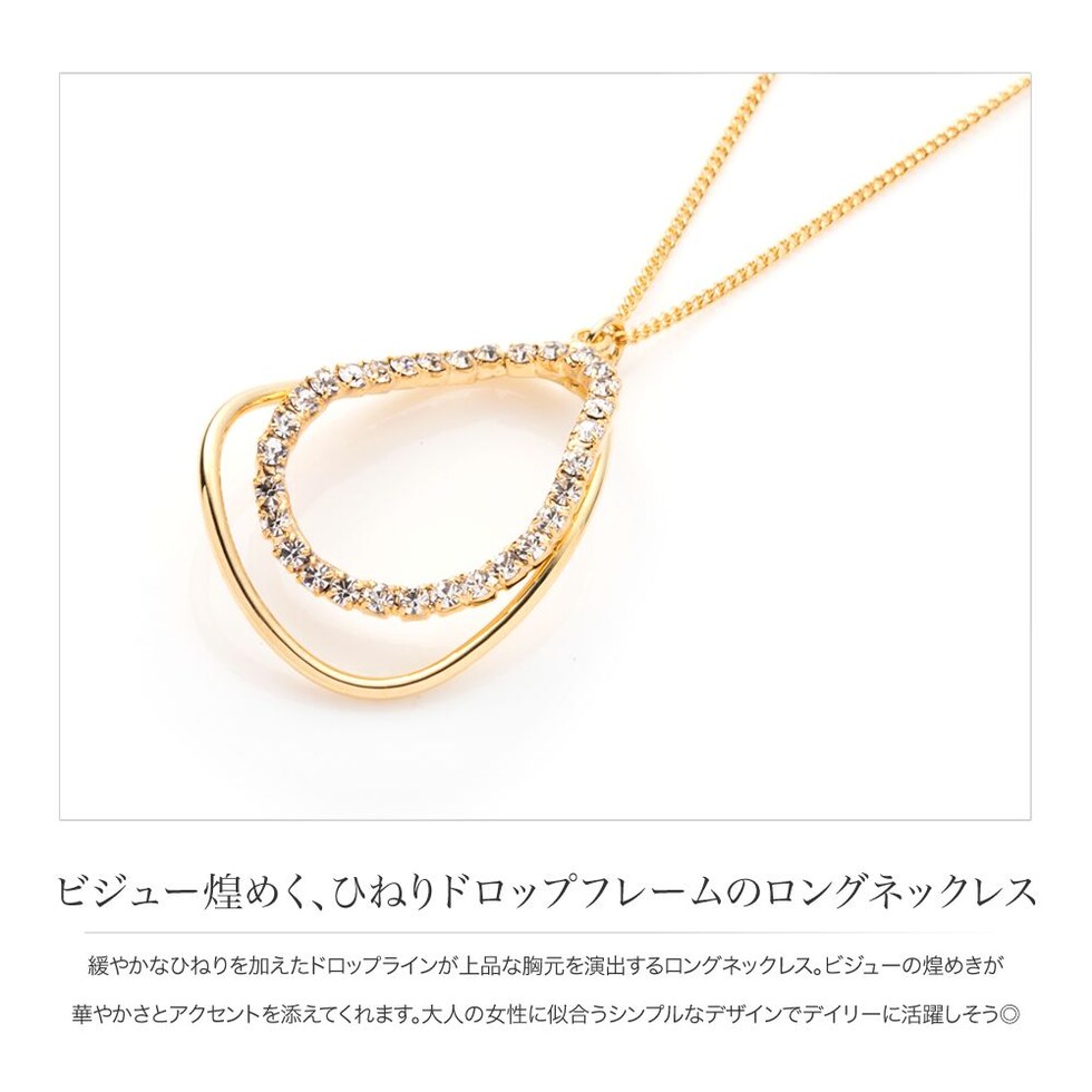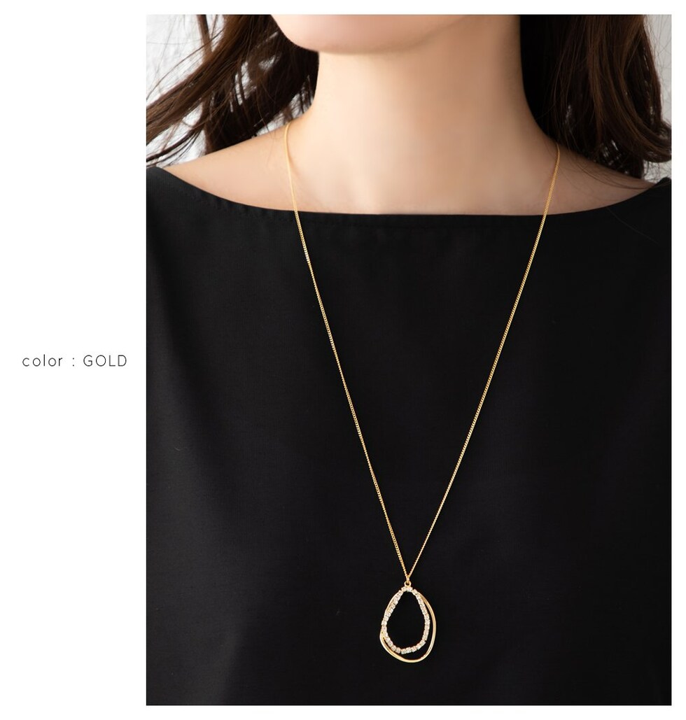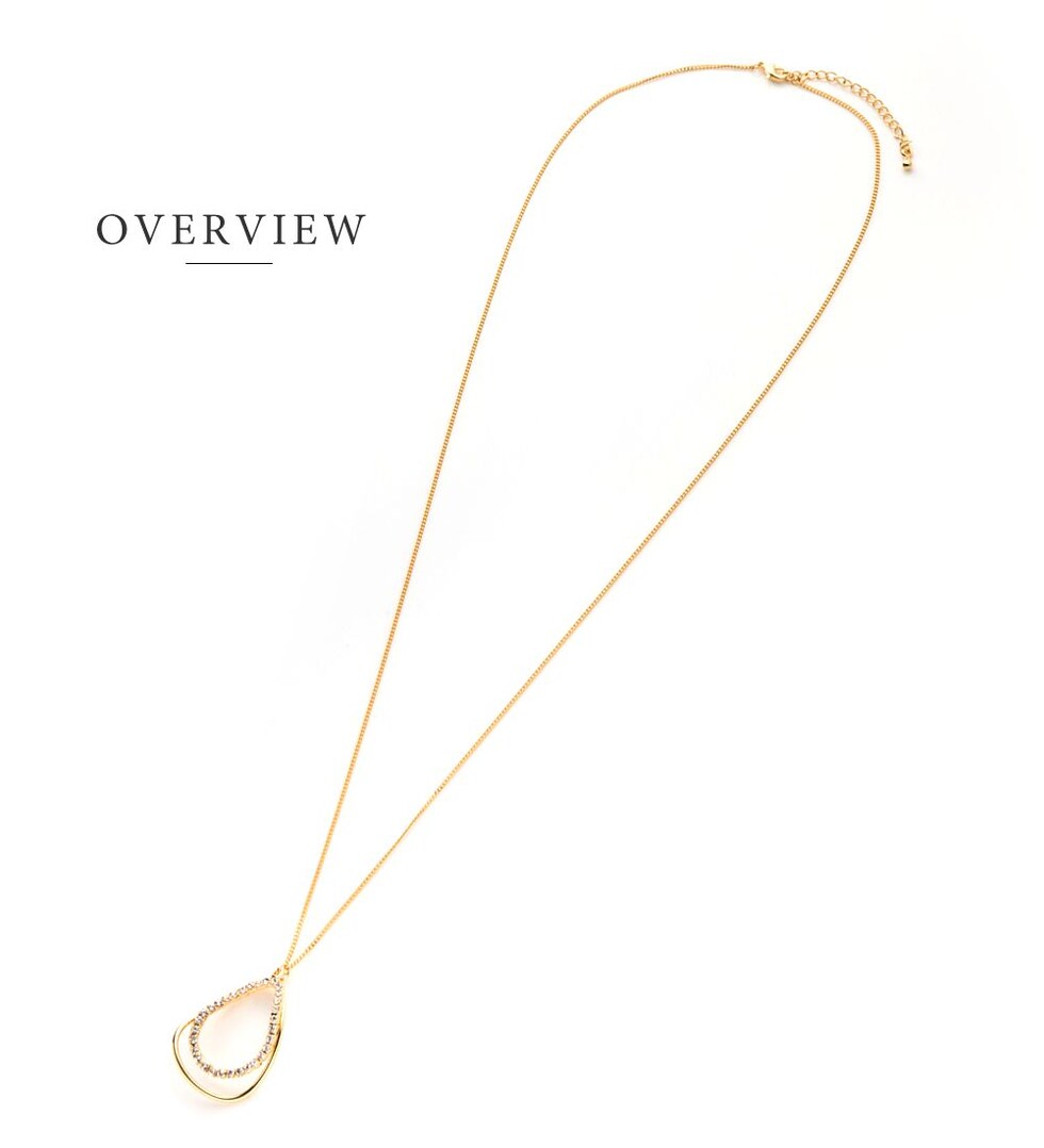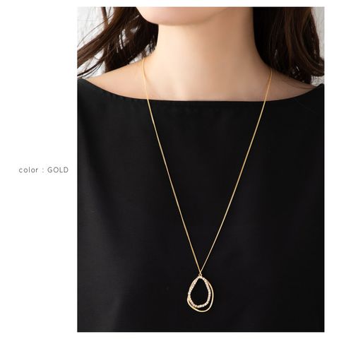 緩やかなひねりを加えたドロップラインが上品な胸元を演出するロングネックレス。