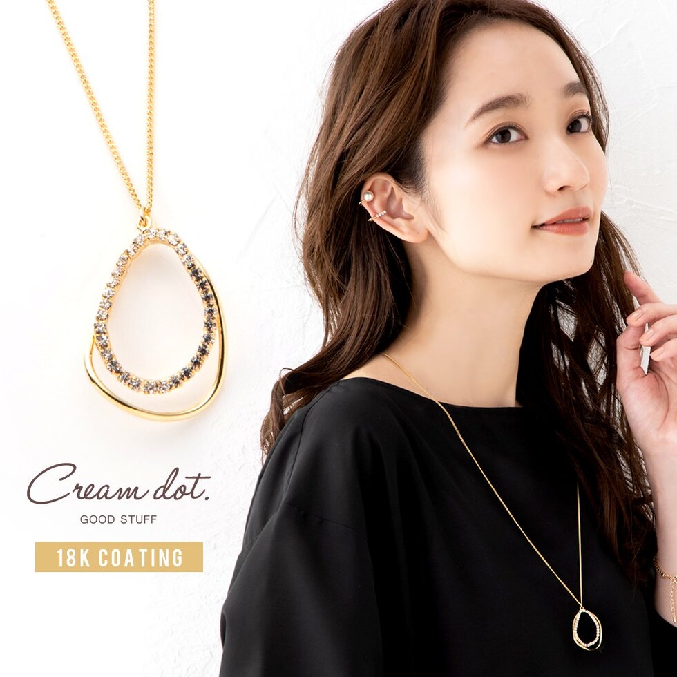 ネックレス 金属アレルギー ニッケルフリー レディース ロング オーバル チェーン キュービックジルコニア ひねり ドロップ cream dot ゆうパケット [シルバー_ワンサイズ]