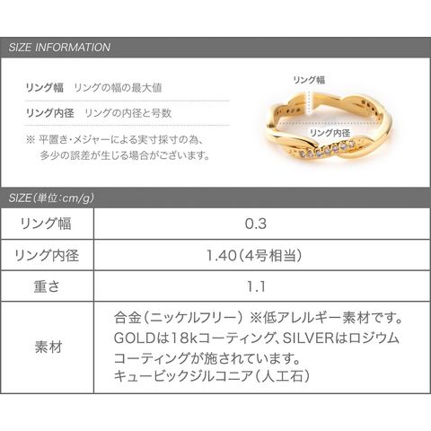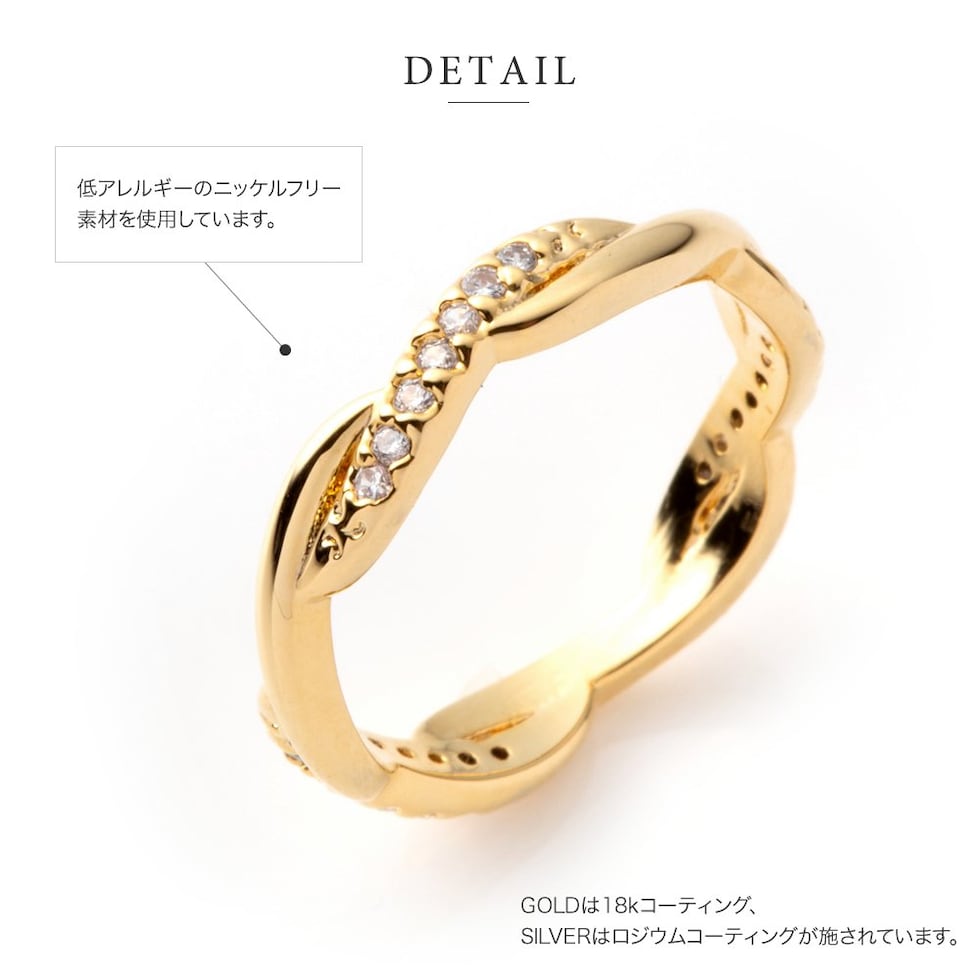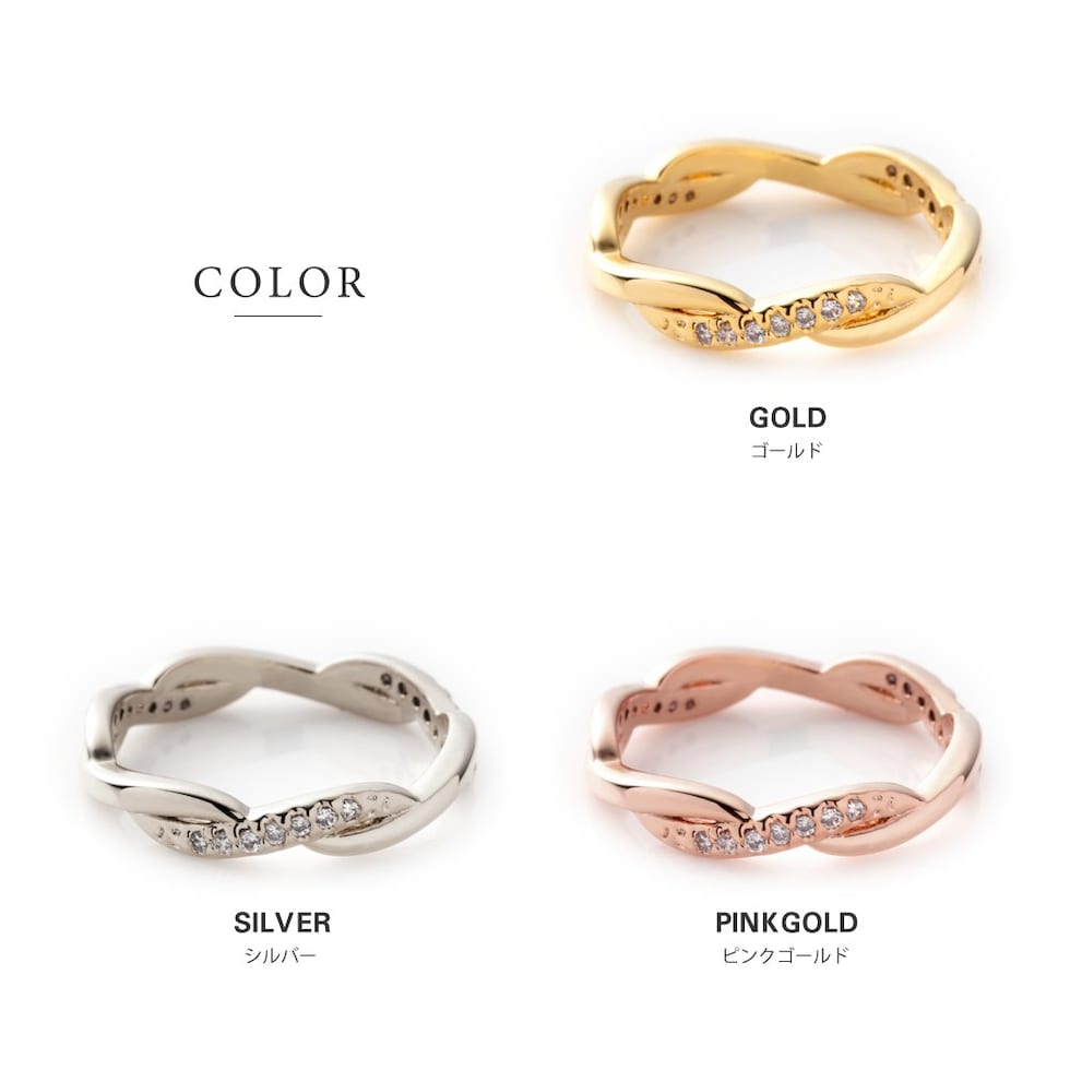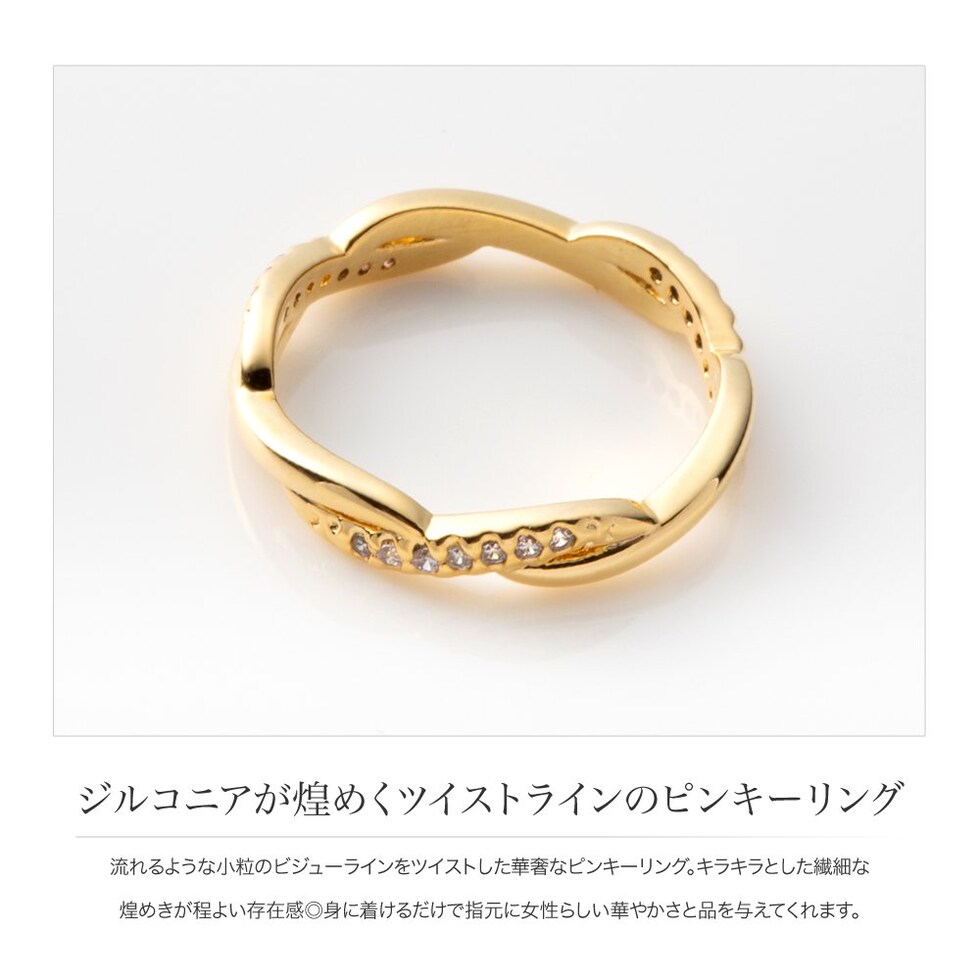 リング 指輪 金属アレルギー ニッケルフリー レディース ピンキーリング 小指 キュービックジルコニア ツイスト cream dot ゆうパケット [ピンクゴールド_4号]