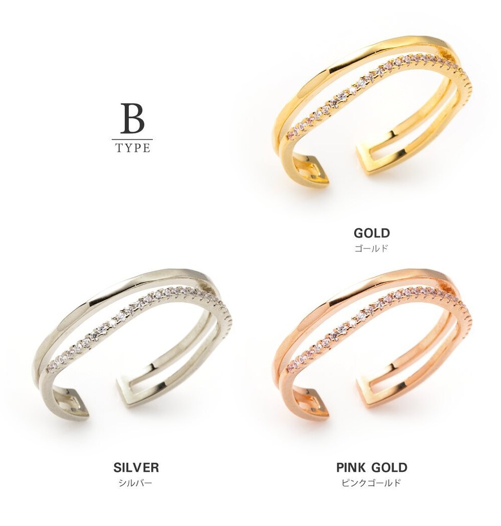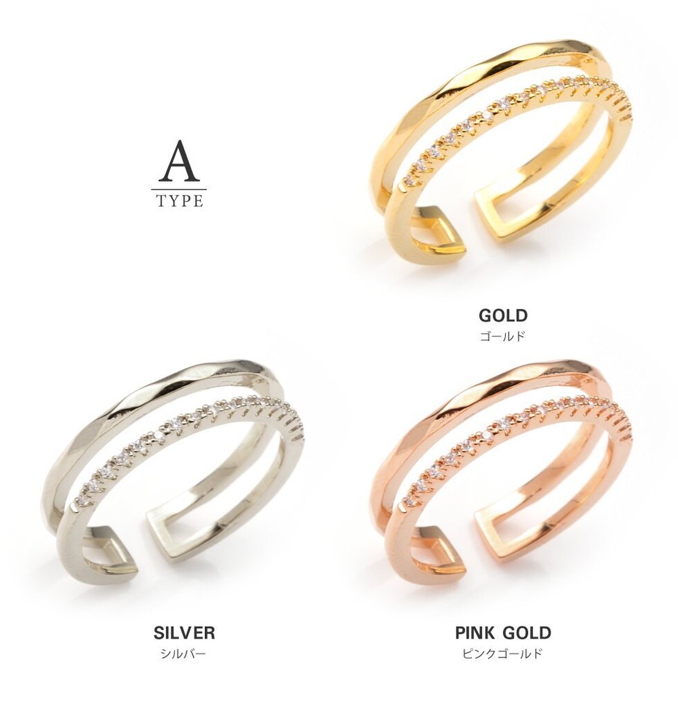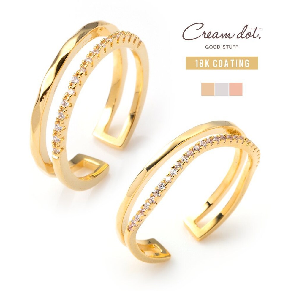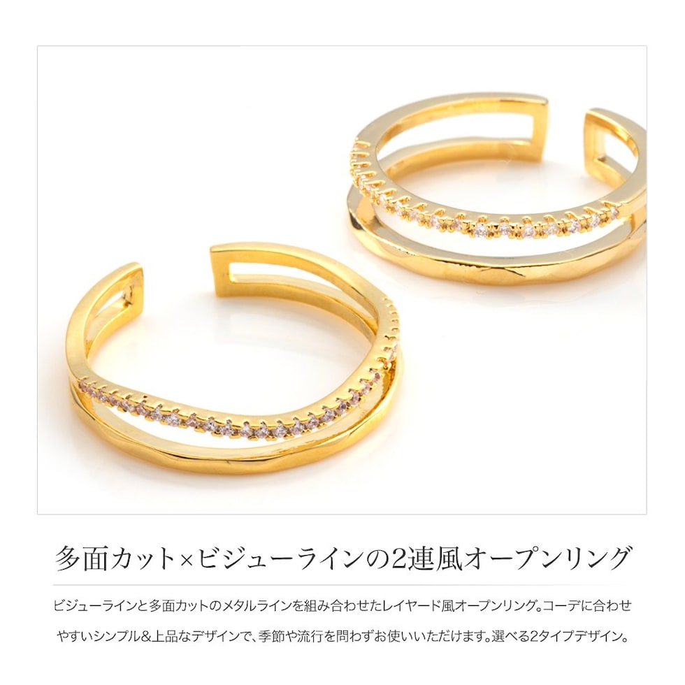 リング 指輪 金属アレルギー ニッケルフリー レディース オープンリング 13~15号 多面カット ビジュー 2連風 cream dot ゆうパケット [B:ピンクゴールド_フリーサイズ]