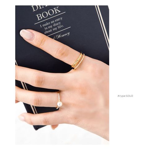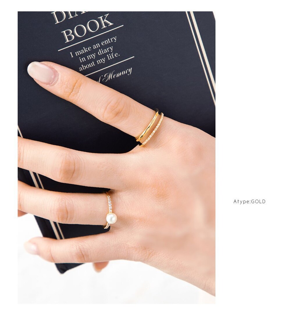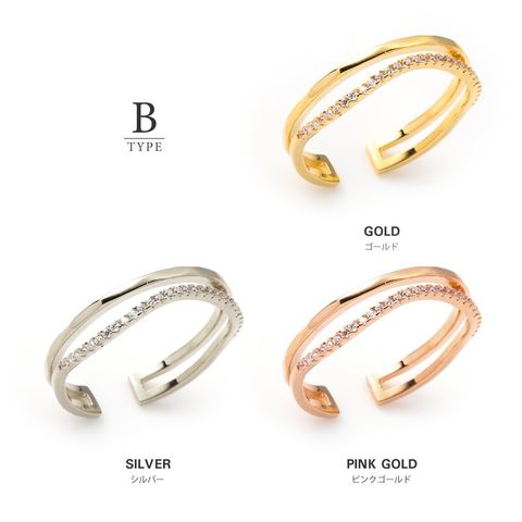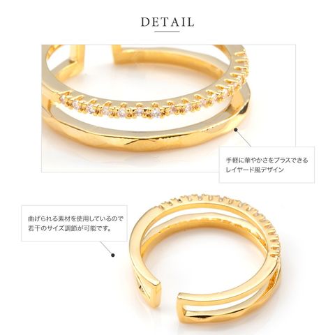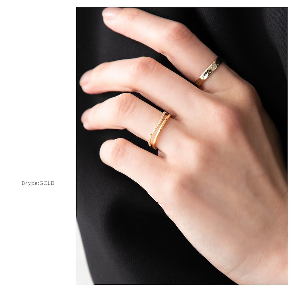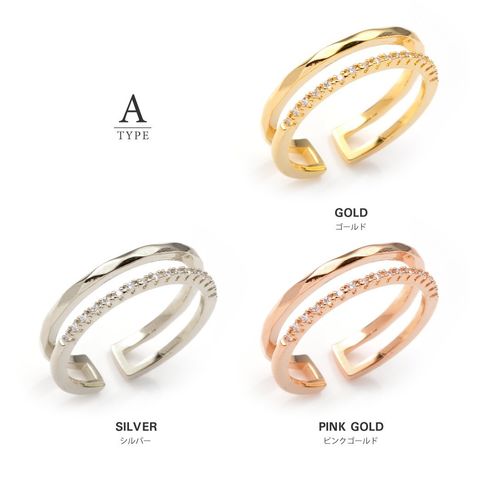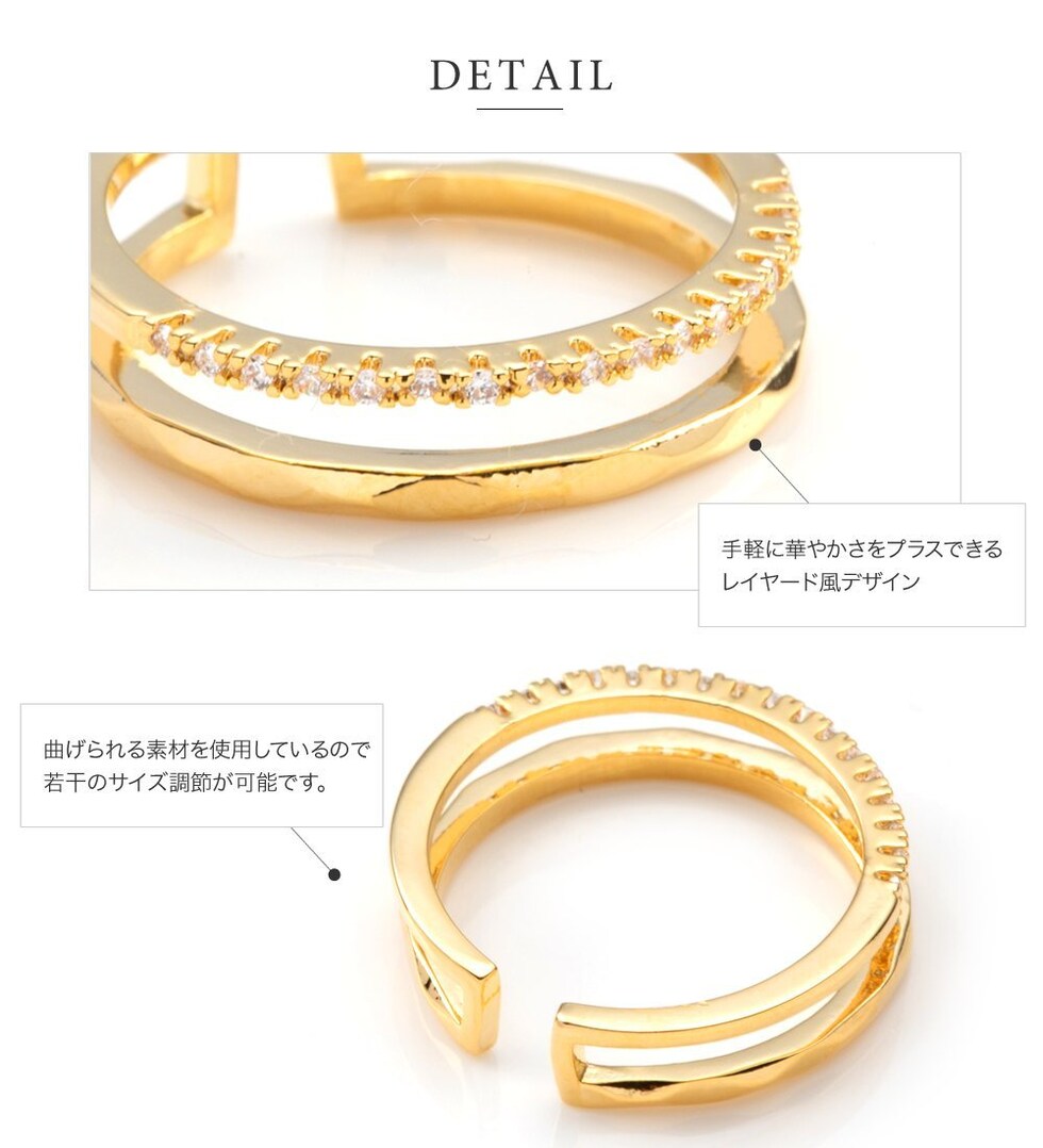 ビジューラインと多面カットのメタルラインを組み合わせたレイヤード風オープンリング。