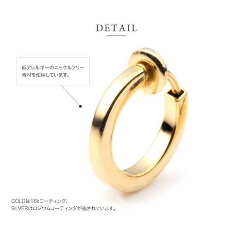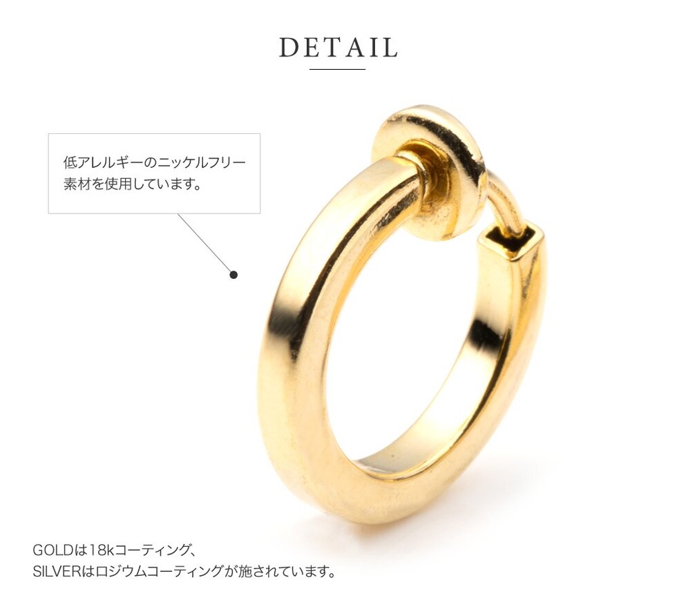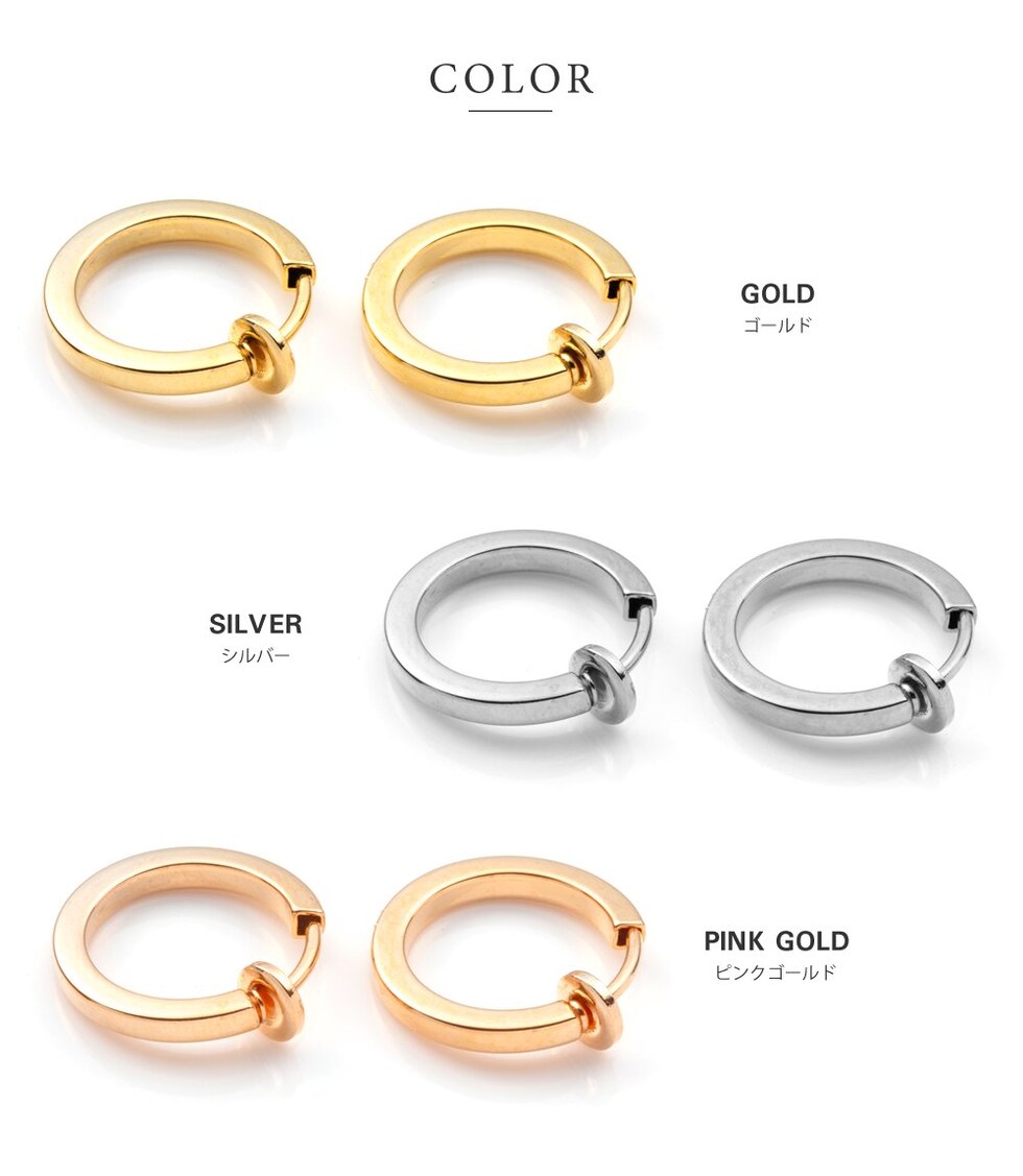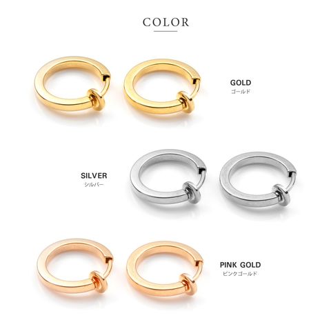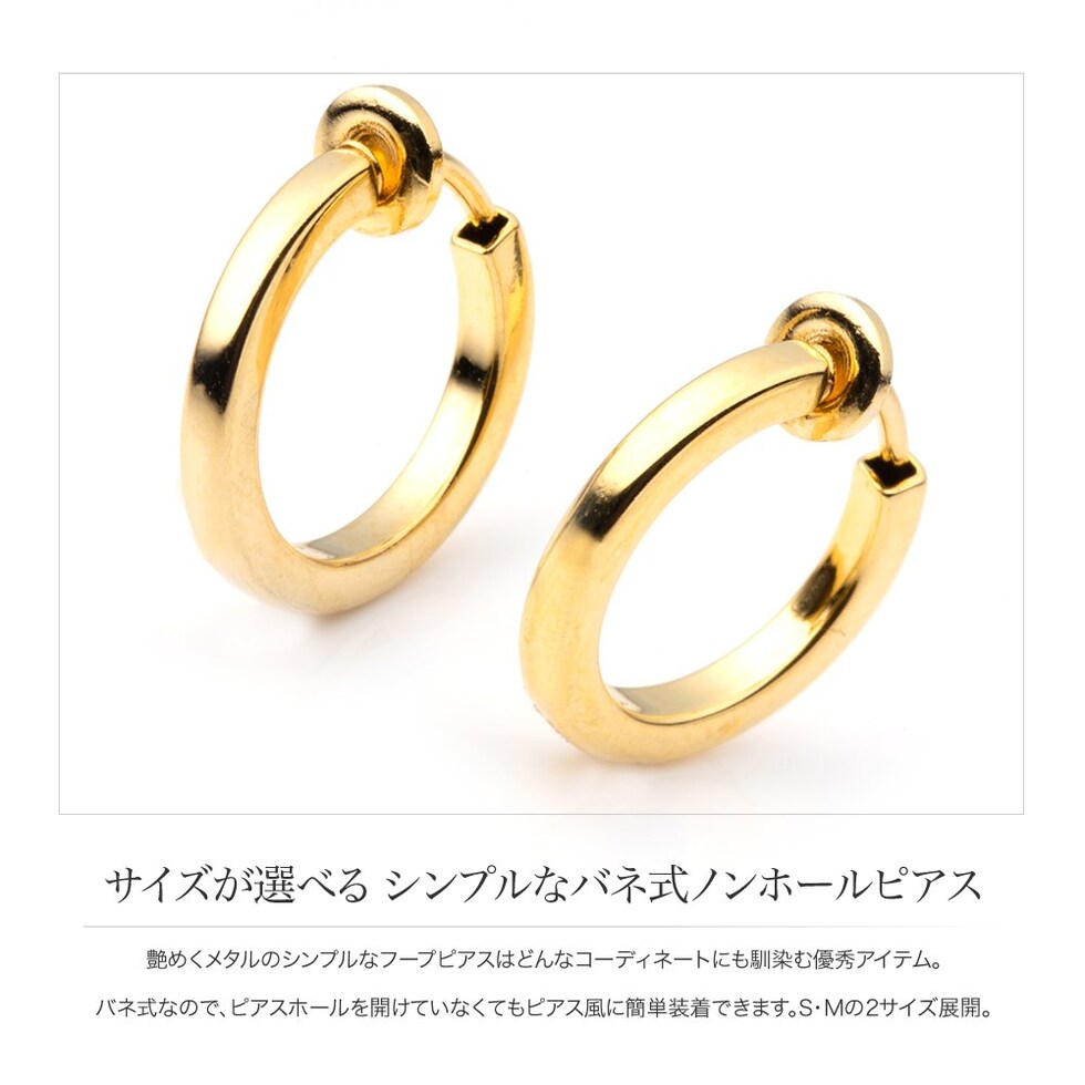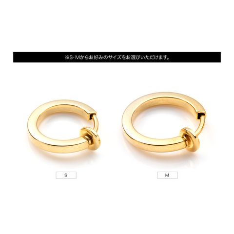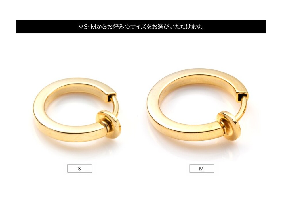 バネ式なので、ピアスホールを開けていなくてもピアス風に簡単装着できます。S・Mの2サイズ展開。