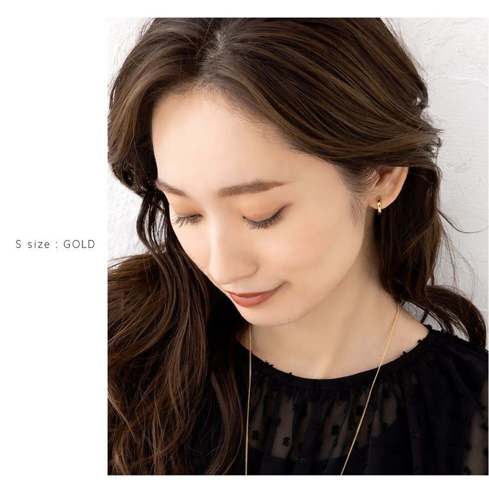 艶めくメタルのシンプルなフープピアスはどんなコーディネートにも馴染む優秀アイテム。