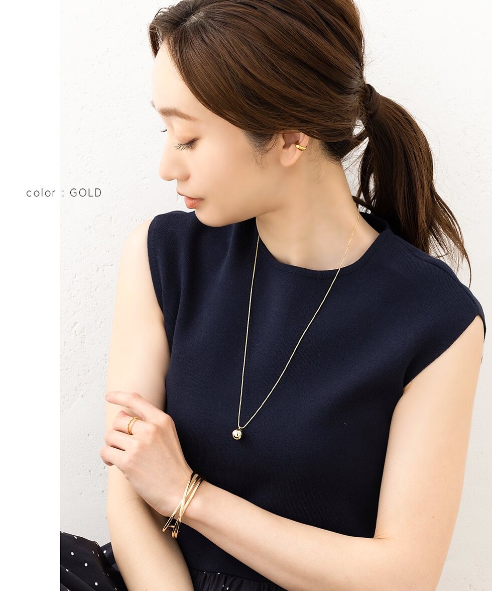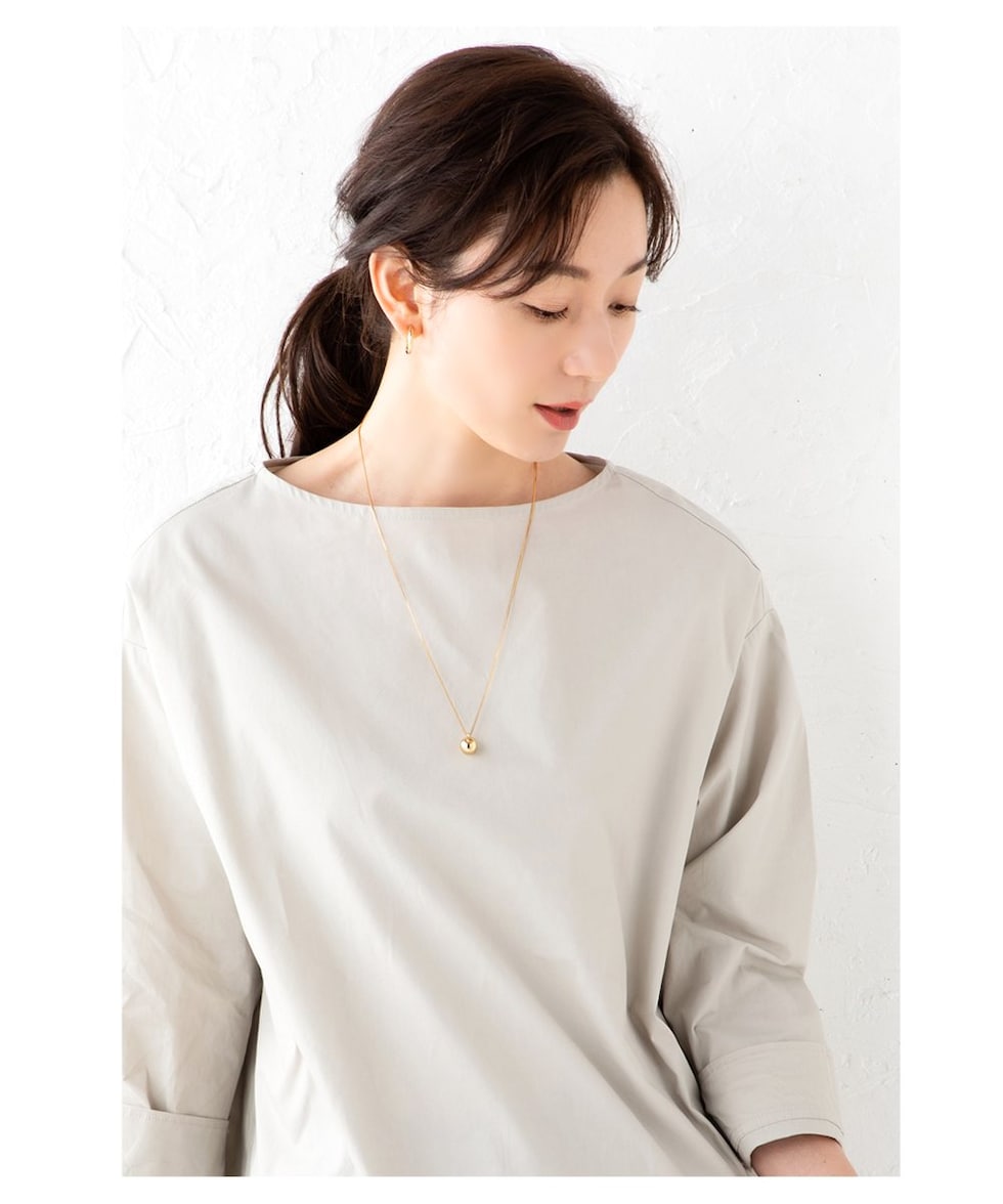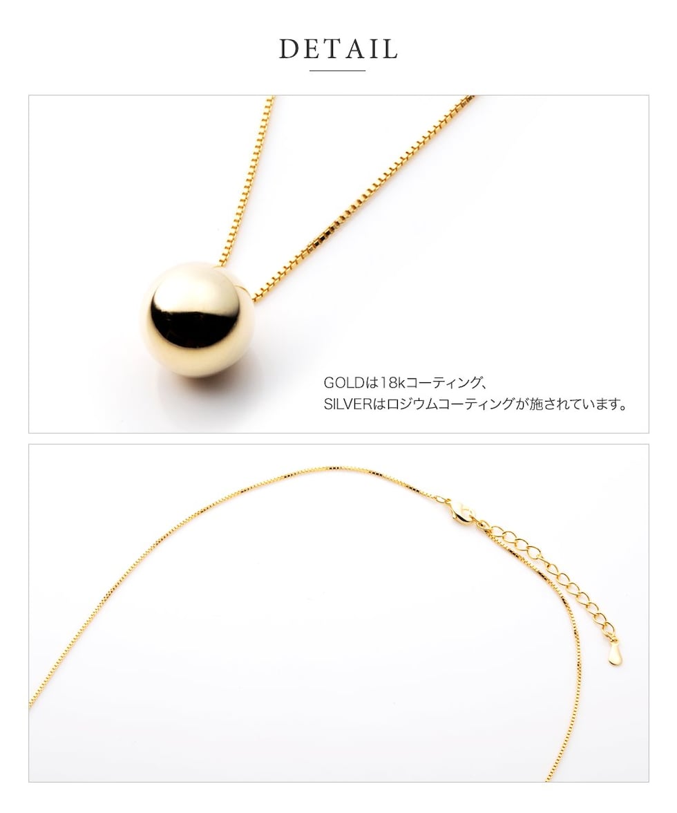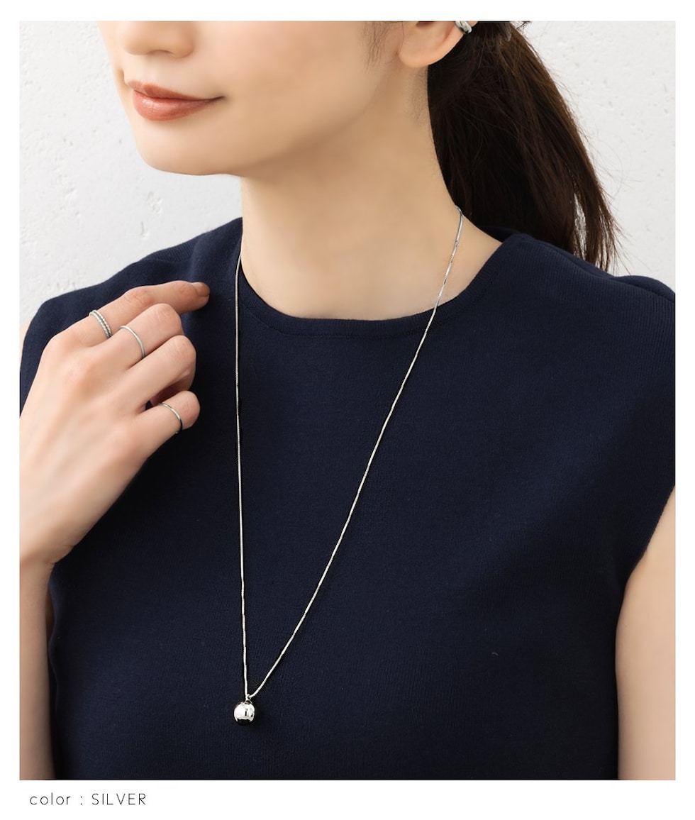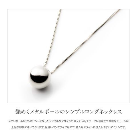 メタルボールがワンポイントになったシンプルなデザインのネックレス。