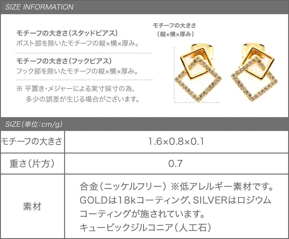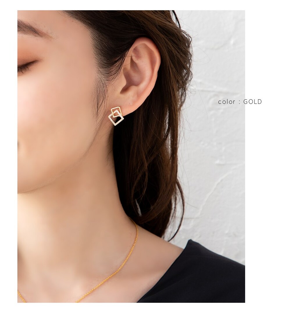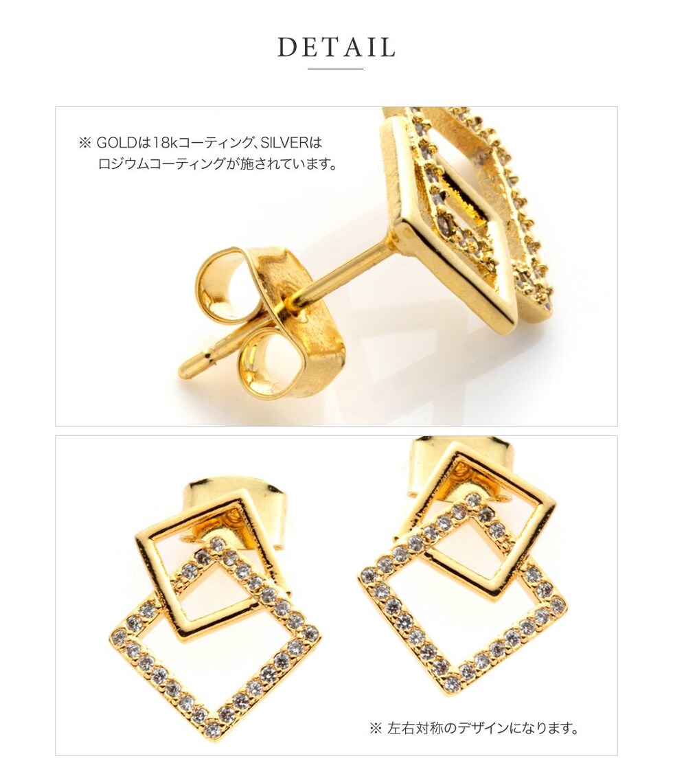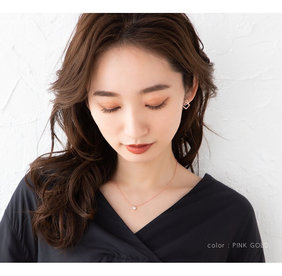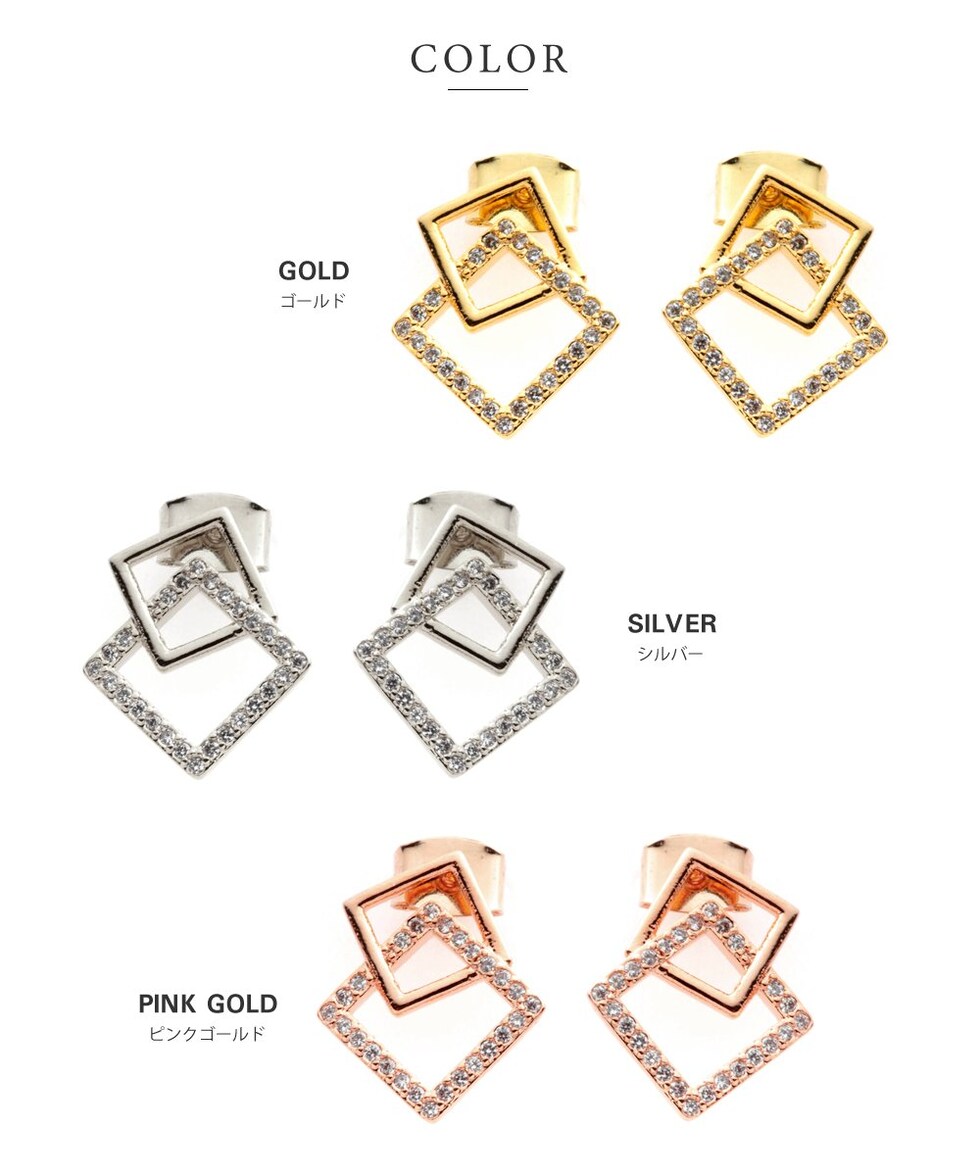 ピアス 金属アレルギー ニッケルフリー レディース スタッド キュービックジルコニア ビジュー スクエア cream dot ゆうパケット [ピンクゴールド_ピアス]
