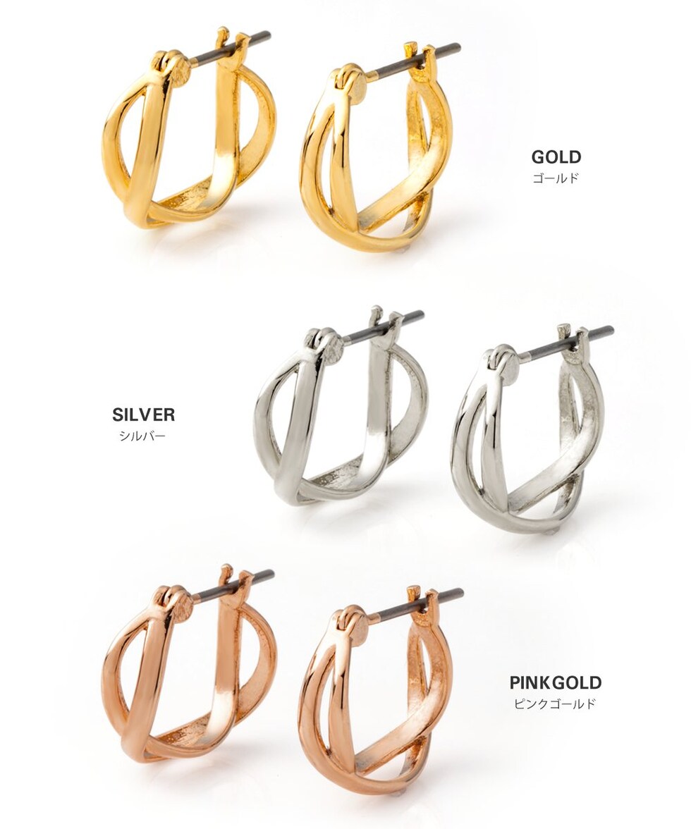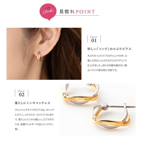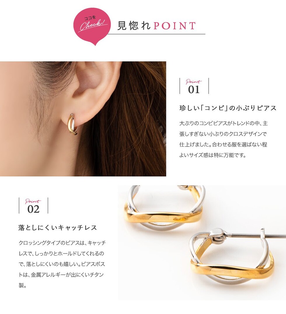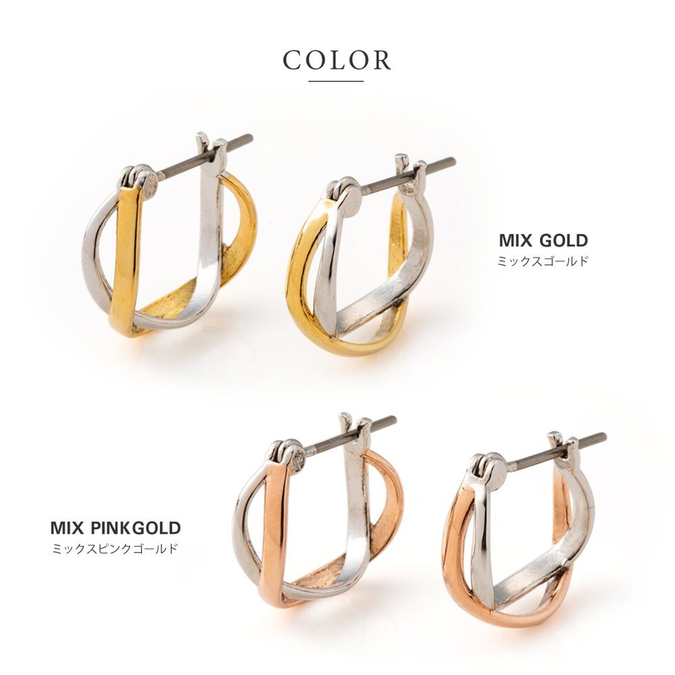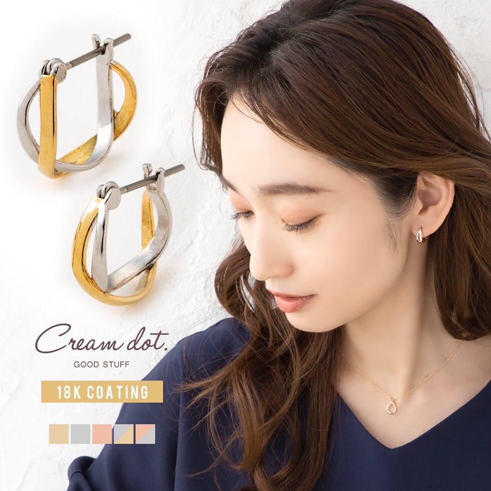 ピアス 金属アレルギー ニッケルフリー レディース フープ キャッチレス クロス バイカラー コンビカラー cream dot ゆうパケット [ピンクゴールド_ピアス]