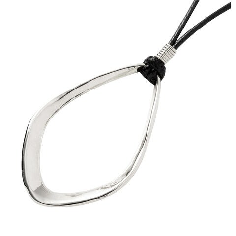 ネックレス 金属アレルギー ニッケルフリー レディース ロング 大ぶり レザーコード オーバル 変形 メタル 歪 puレザー cream dot ゆうパケット [C:シルバー_ワンサイズ]