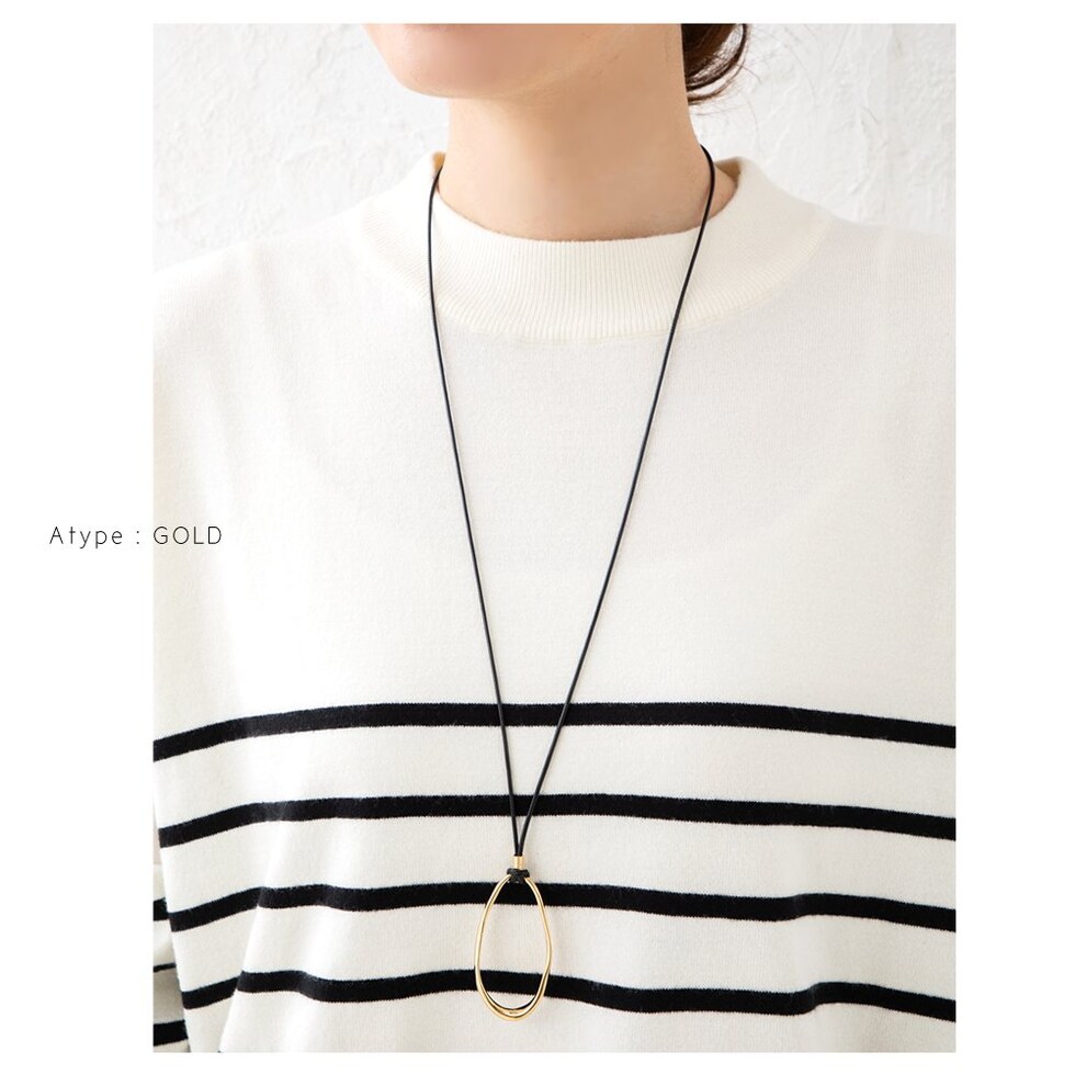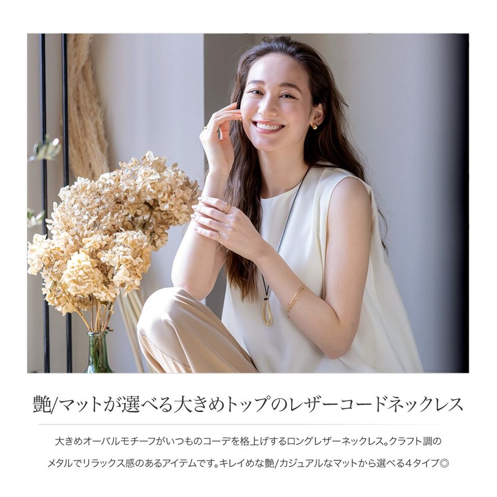 大きめオーバルモチーフがいつものコーデを格上げするロングレザーネックレス。クラフト調のメタルでリラックス感のあるアイテムです。キレイめな艶/カジュアルなマットから選べる4タイプ◎
