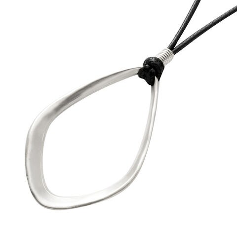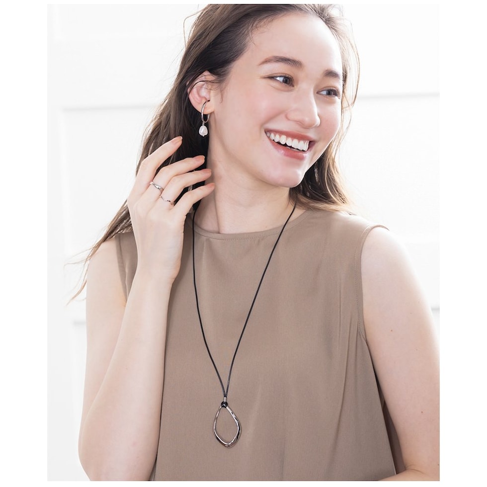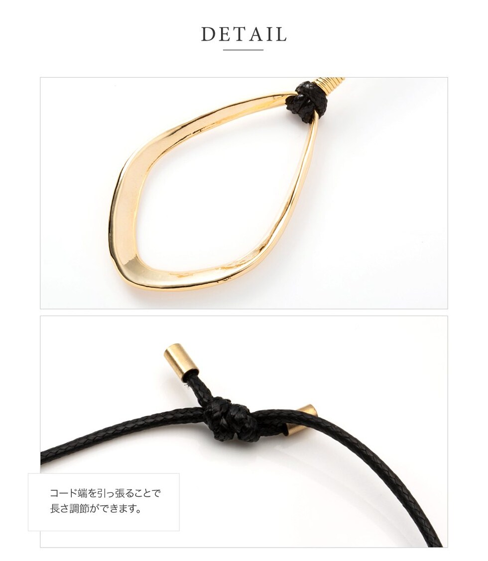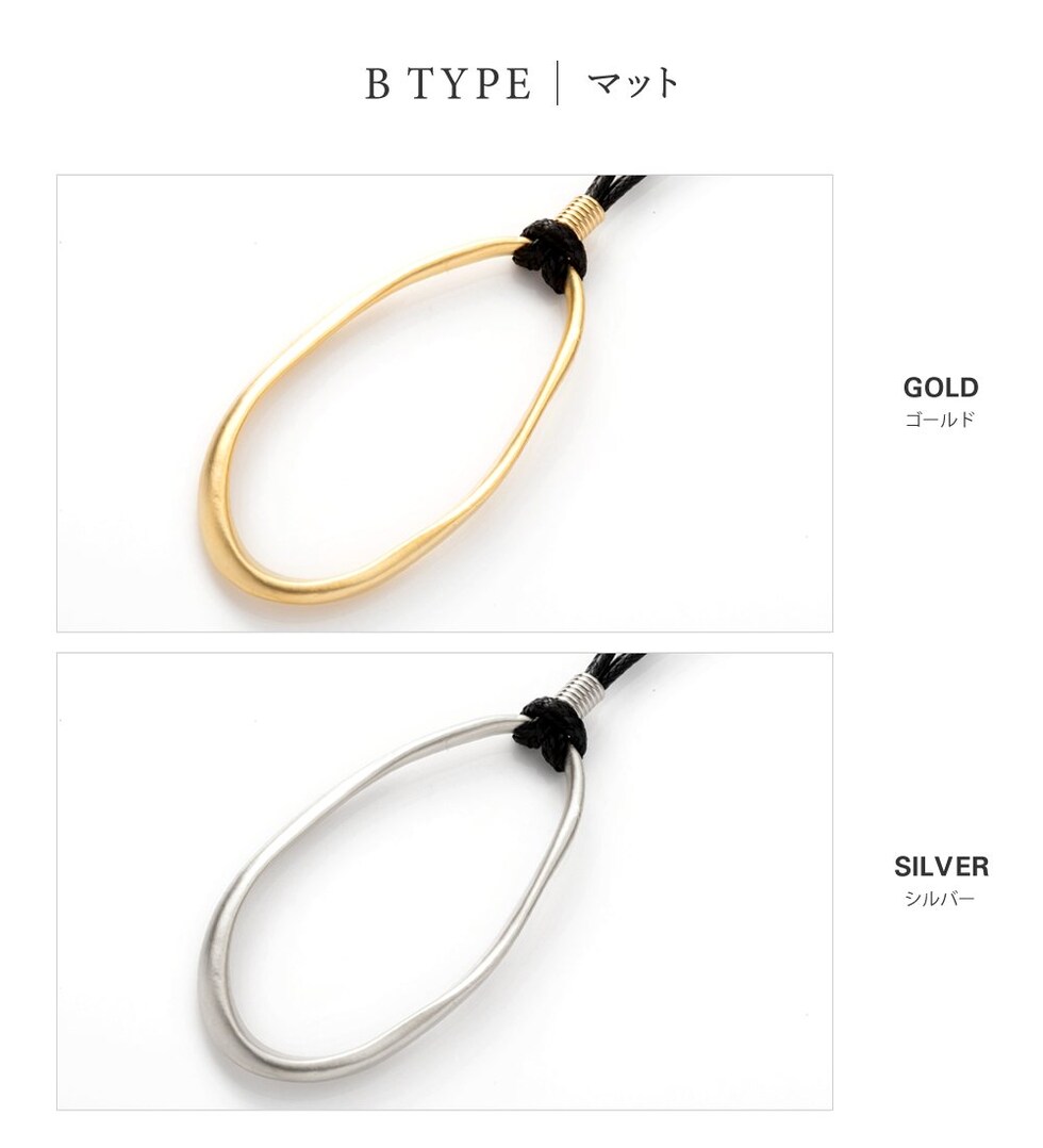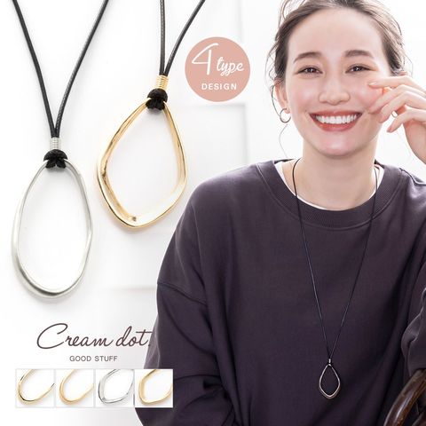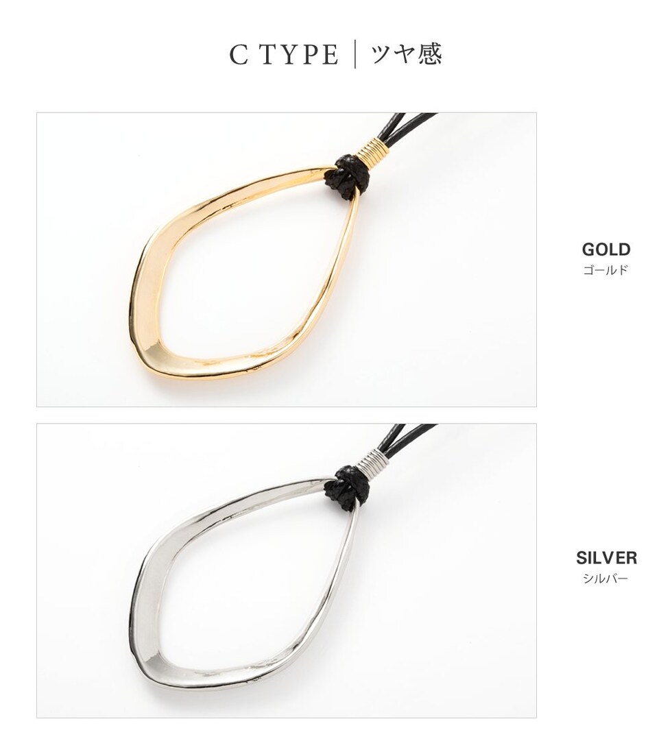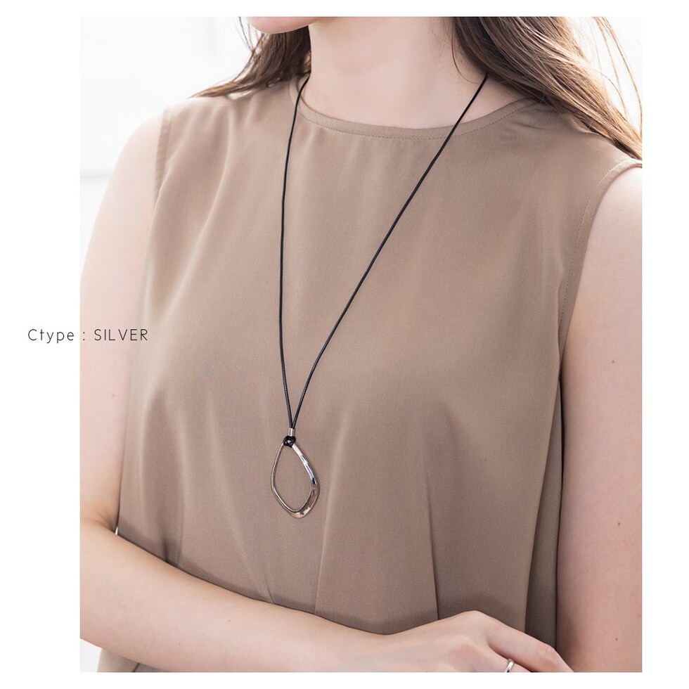 ネックレス 金属アレルギー ニッケルフリー レディース ロング 大ぶり レザーコード オーバル 変形 メタル 歪 puレザー cream dot ゆうパケット [D:シルバー_ワンサイズ]
