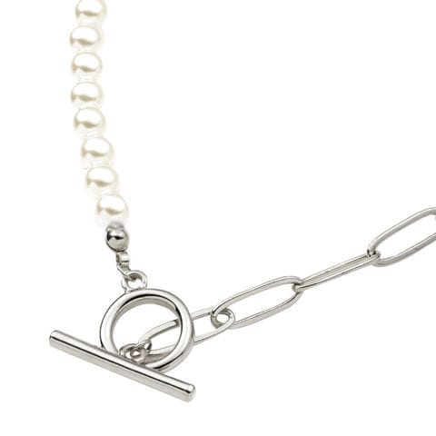 ネックレス 金属アレルギー ニッケルフリー レディース ショート マンテル パール チェーン メタル 切り替え 異素材 cream dot ゆうパケット [シルバー_ワンサイズ]
