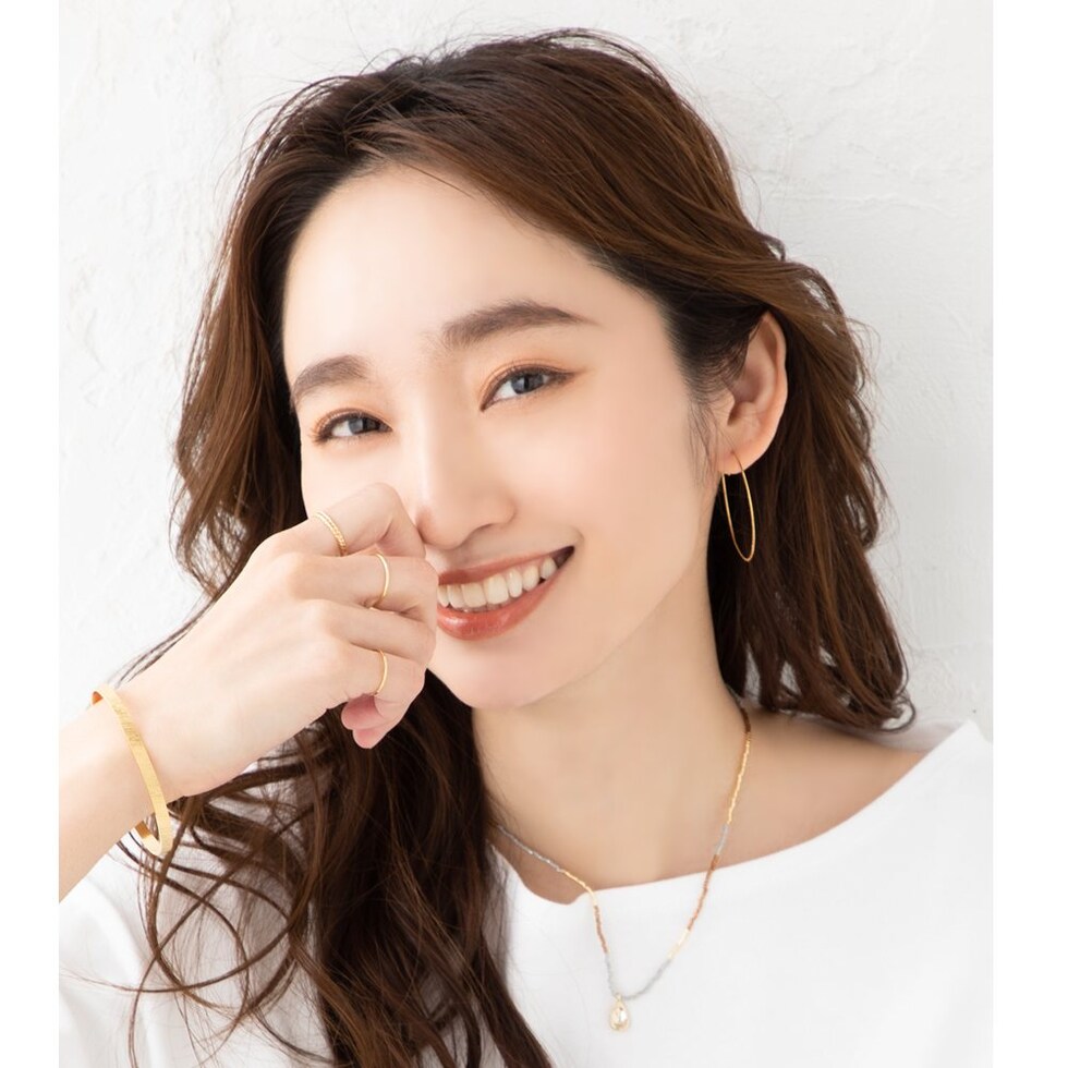 華奢なラインと加工から上に向かってシェイプされたデザインがおしゃれな印象。