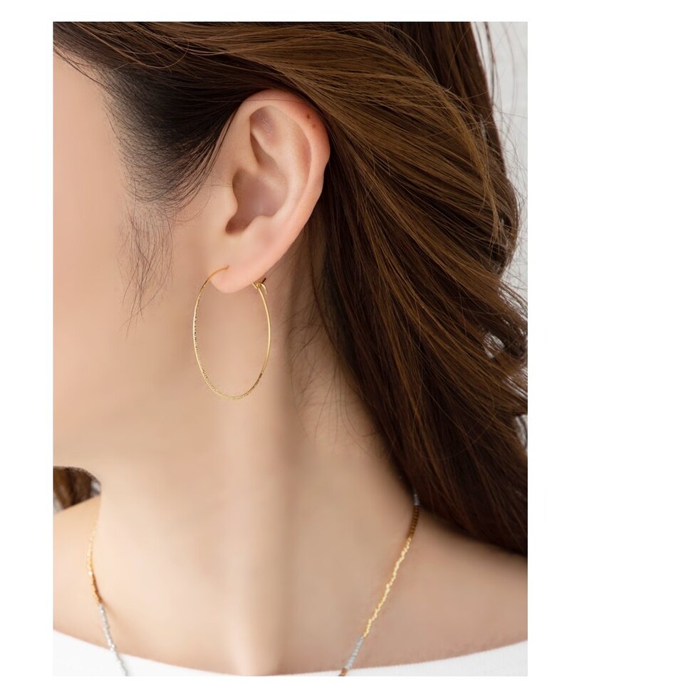 フープの下部分にスターダスト加工を施したビッグフープピアス。