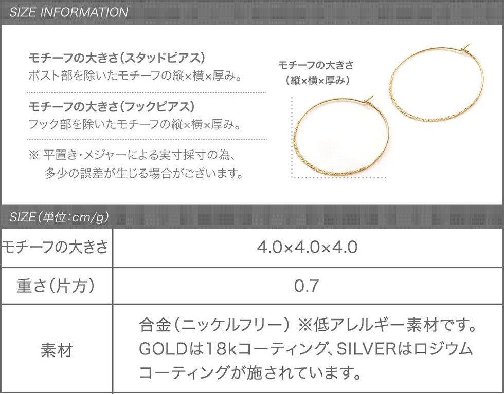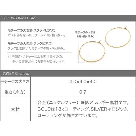 ピアス 金属アレルギー ニッケルフリー レディース フープ キャッチレス スターダスト加工 大きめ cream dot ゆうパケット [シルバー_ピアス]