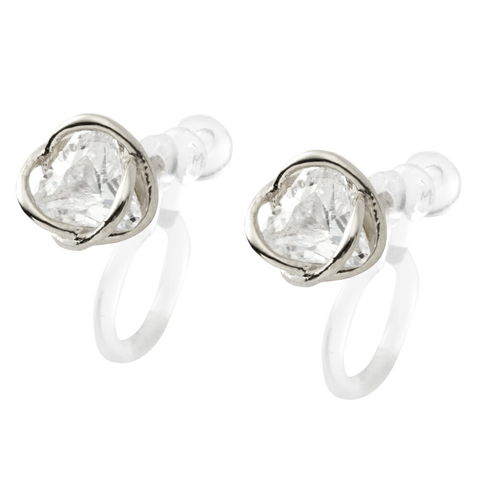 トライアングルモチーフのクリスタル硝子をクロスワイヤーで包み込んだピアス/イヤリング。