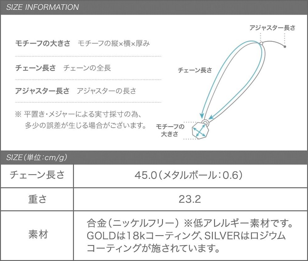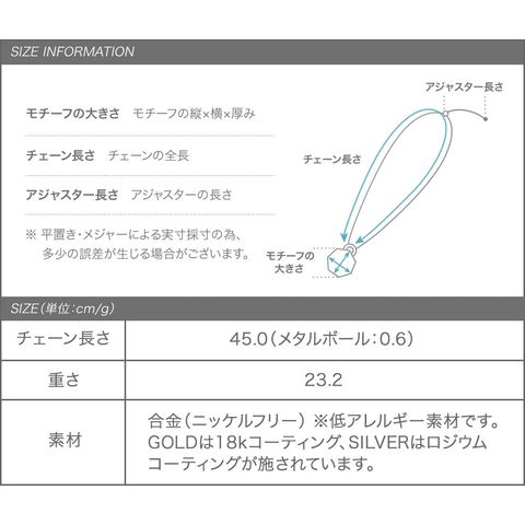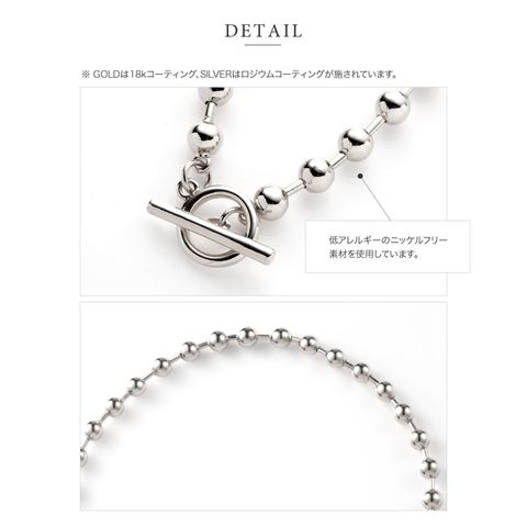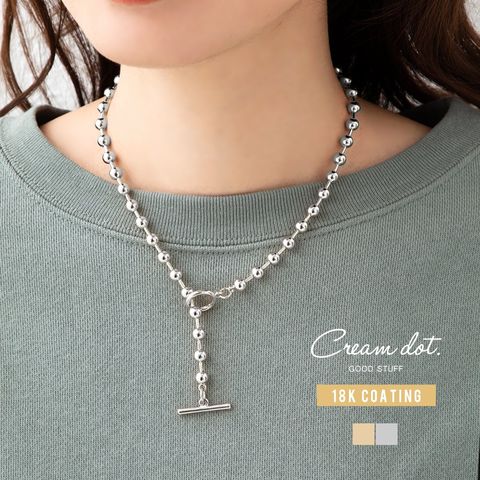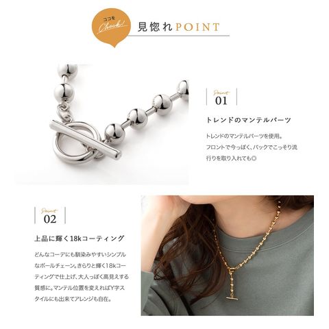 どんなコーデにも馴染みやすいシンプルなボールチェーン。きらりと輝く18kコーティングで仕上げ、大人っぽく高見えする質感に。マンテル位置を変えればY字スタイルにも出来てアレンジも自在。