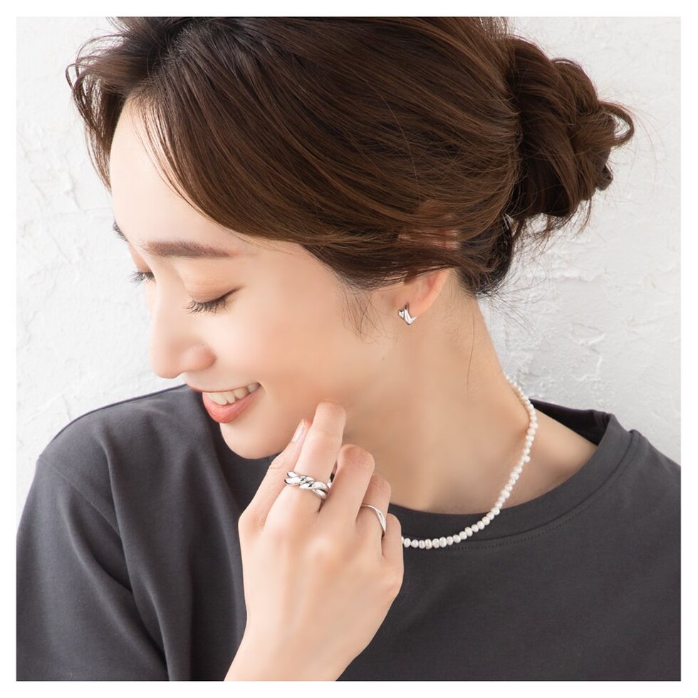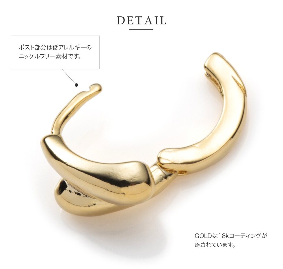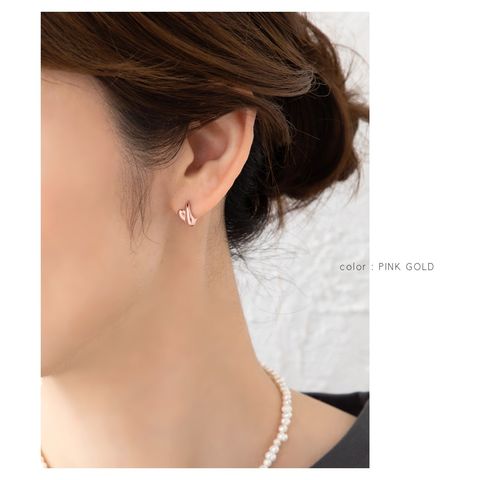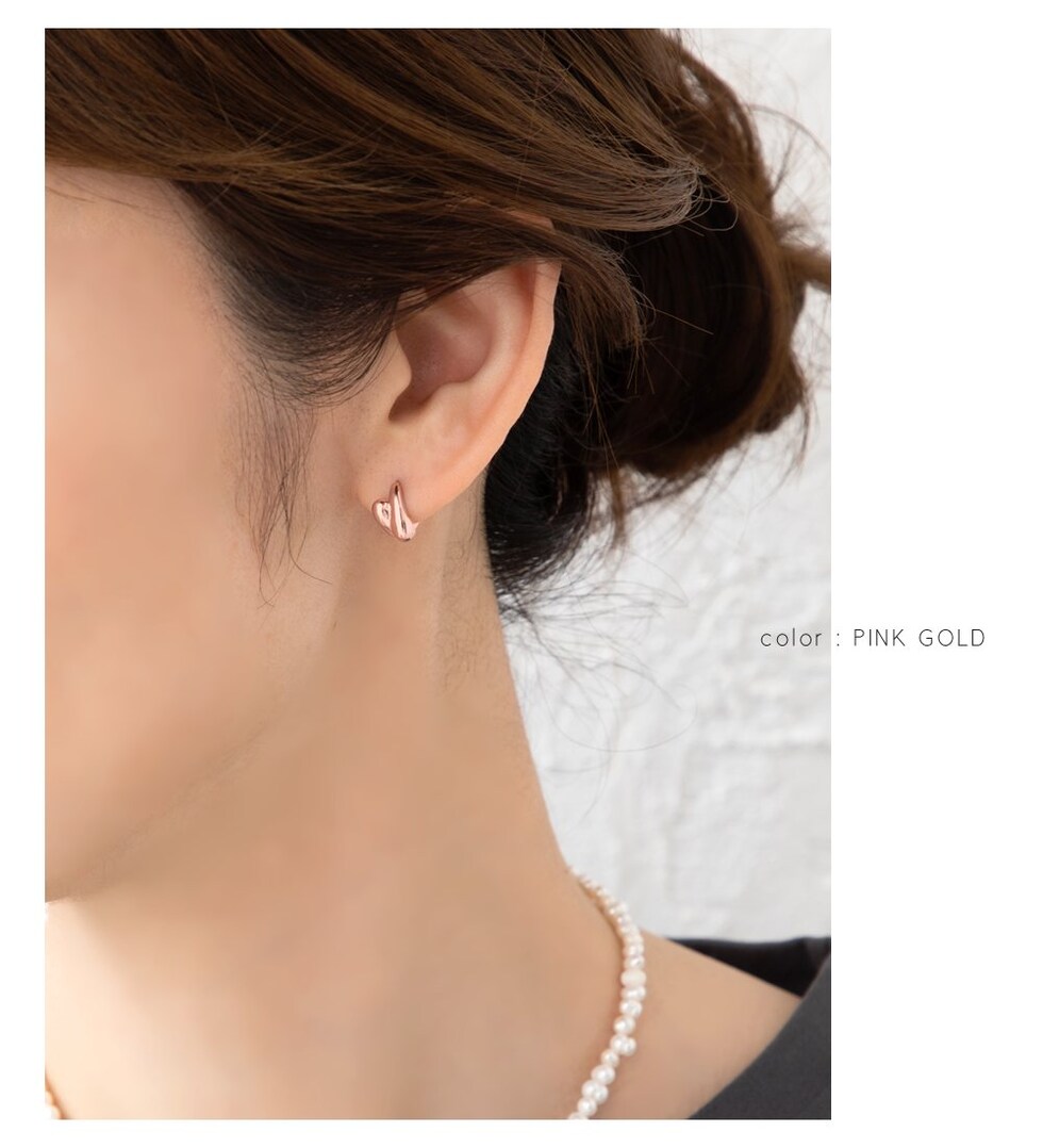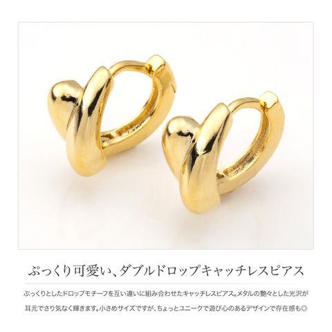 ぷっくりとしたドロップモチーフを互い違いに組み合わせたキャッチレスピアス。メタルの艶々とした光沢が耳元でさり気なく輝きます。小さめサイズですが、ちょっとユニークで遊び心のあるデザインで存在感も◎