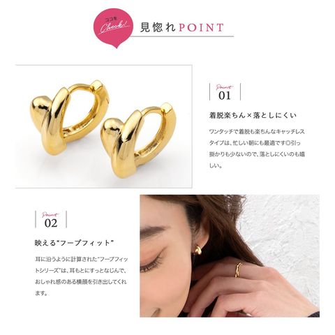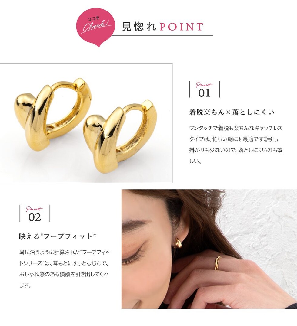 耳に沿うように計算された“フープフィットシリーズ”は、耳もとにすっとなじんで、おしゃれ感のある横顔を引き出してくれます。