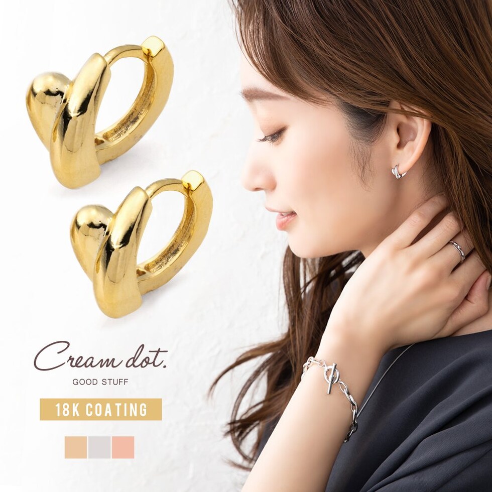 ピアス 金属アレルギー ニッケルフリー レディース フープ 中折れ キャッチレス ドロップ ぷっくり 小さめ ミニ フープフィット cream dot ゆうパケット [シルバー_ピアス]