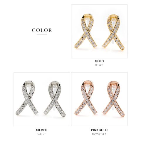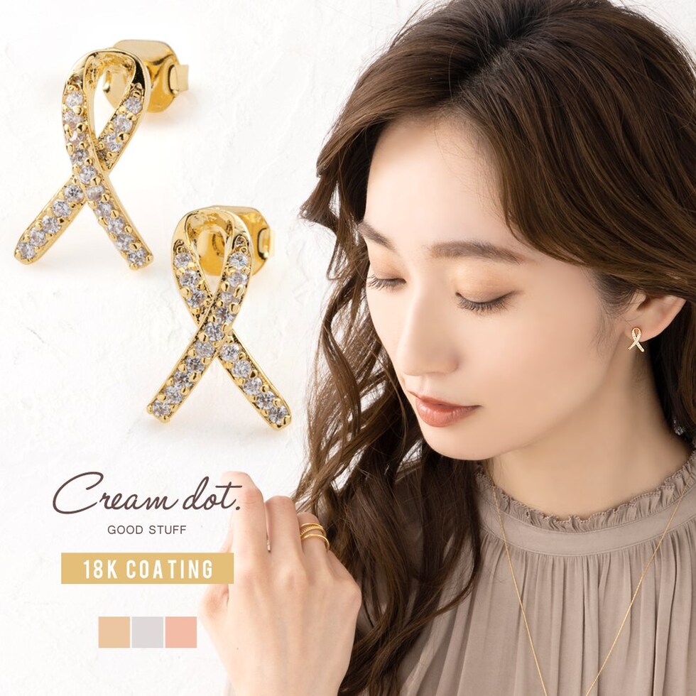 ピアス イヤリング 金属アレルギー ニッケルフリー レディース ノット 結び目 リボン カーブ キュービックジルコニア cream dot ゆうパケット [ピンクゴールド_ピアス]