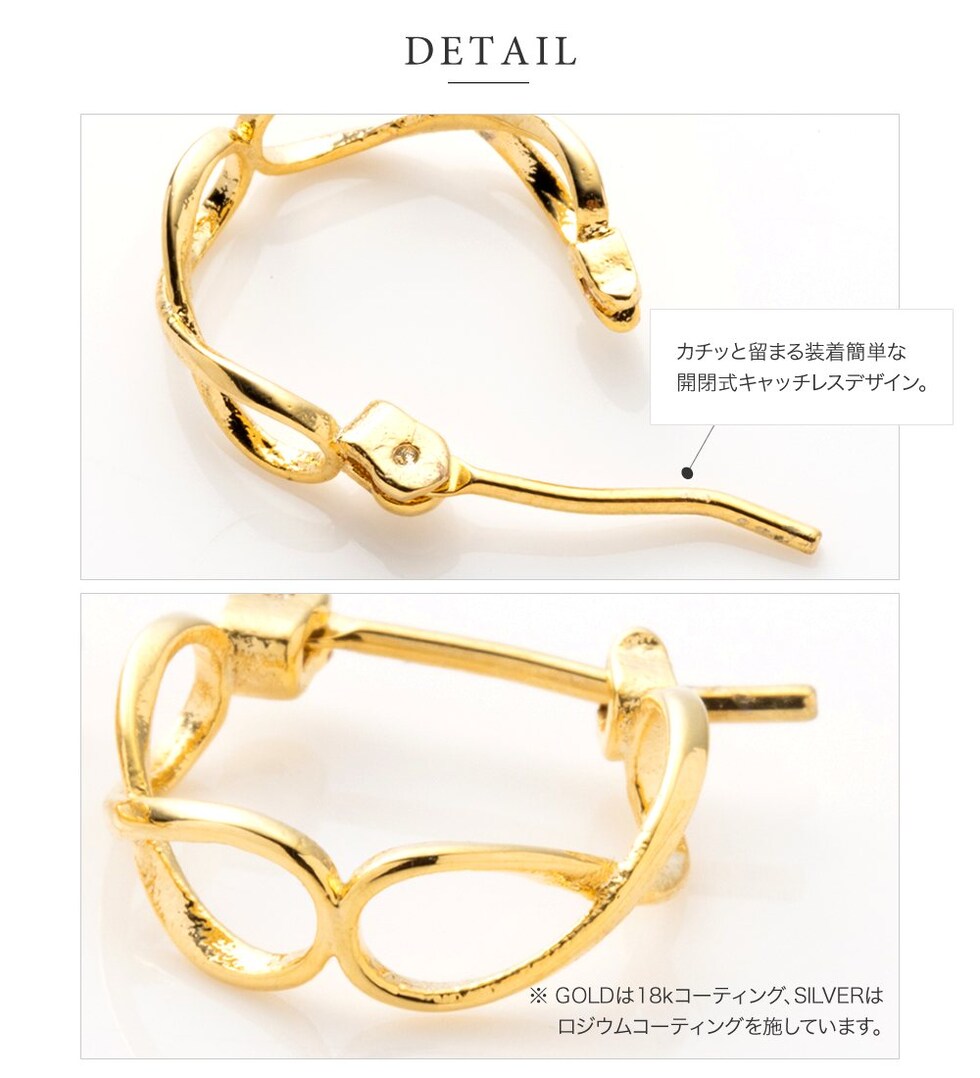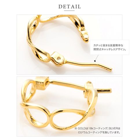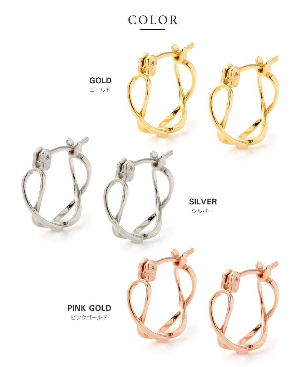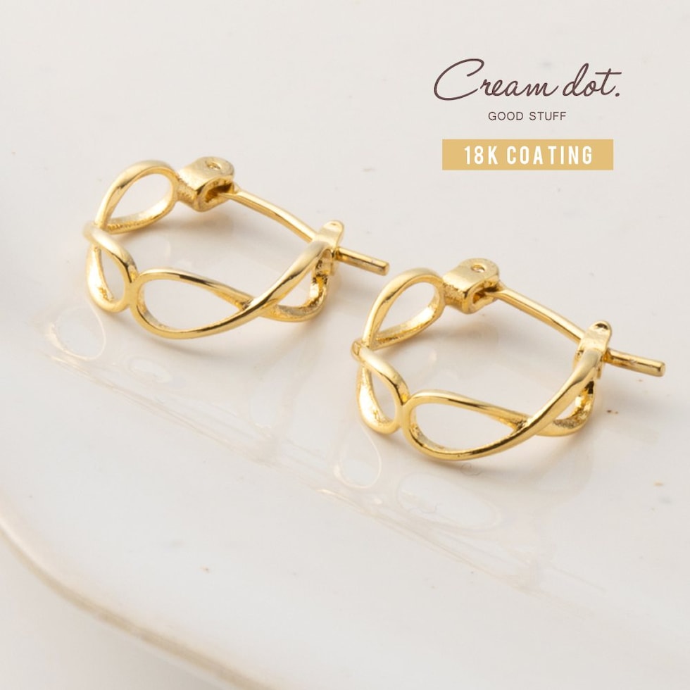 ピアス 金属アレルギー ニッケルフリー レディース フープ キャッチレス インフィニティ クロス 交差 cream dot ゆうパケット [ピンクゴールド_ピアス]