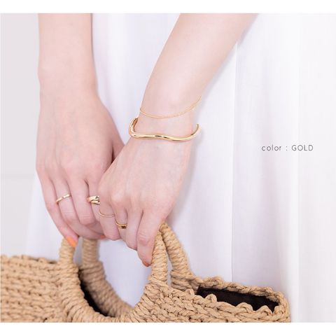 バングル 金属アレルギー ニッケルフリー レディース 変形 カーブ ウェーブ ぷっくり メタル cream dot ゆうパケット [ゴールド_ワンサイズ]