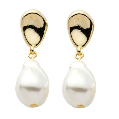 凹みドロップのメタル×歪な形が大人っぽいバロックパール風モチーフのイヤリング/ピアス。大きさや形が異なる6タイプ/2色展開。さりげなく揺れるパールの優しい光沢感がコーデを華やかに仕上げます。