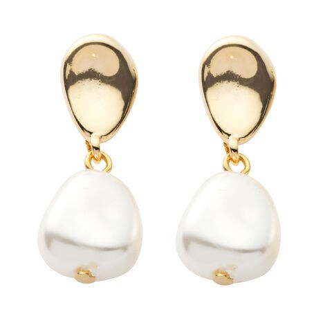 凹みドロップのメタル×歪な形が大人っぽいバロックパール風モチーフのイヤリング/ピアス。大きさや形が異なる6タイプ/2色展開。さりげなく揺れるパールの優しい光沢感がコーデを華やかに仕上げます。