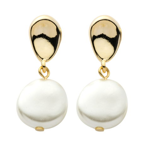 凹みドロップのメタル×歪な形が大人っぽいバロックパール風モチーフのイヤリング/ピアス。大きさや形が異なる6タイプ/2色展開。さりげなく揺れるパールの優しい光沢感がコーデを華やかに仕上げます。