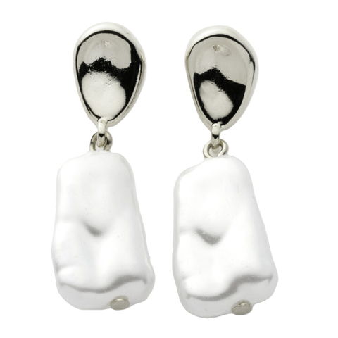 凹みドロップのメタル×歪な形が大人っぽいバロックパール風モチーフのイヤリング/ピアス。大きさや形が異なる6タイプ/2色展開。さりげなく揺れるパールの優しい光沢感がコーデを華やかに仕上げます。