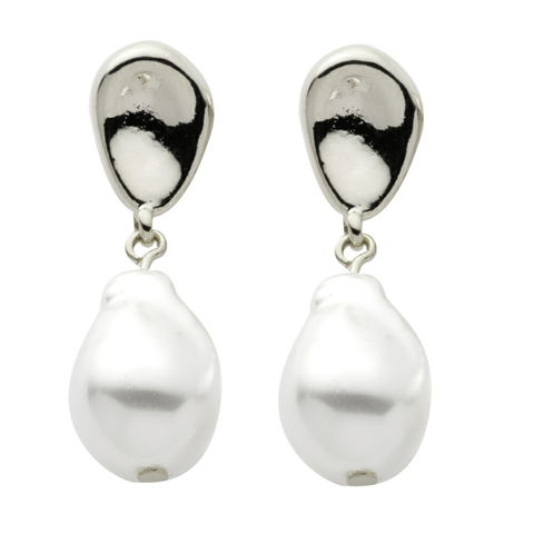 凹みドロップのメタル×歪な形が大人っぽいバロックパール風モチーフのイヤリング/ピアス。大きさや形が異なる6タイプ/2色展開。さりげなく揺れるパールの優しい光沢感がコーデを華やかに仕上げます。