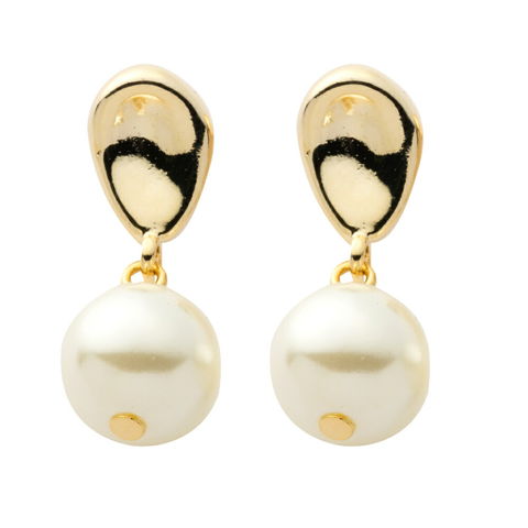 凹みドロップのメタル×歪な形が大人っぽいバロックパール風モチーフのイヤリング/ピアス。大きさや形が異なる6タイプ/2色展開。さりげなく揺れるパールの優しい光沢感がコーデを華やかに仕上げます。
