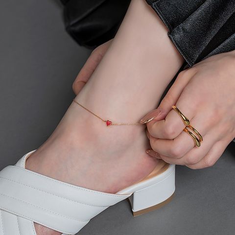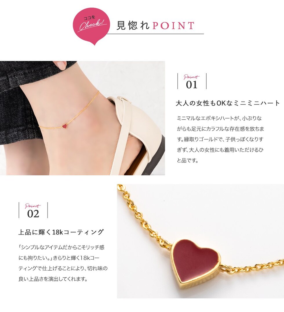 アンクレット 金属アレルギー ニッケルフリー レディース アンクレット ハート 小さめ 小さい ミニ エポキシ 縁どり 赤 黒 cream dot ゆうパケット [レッド_ワンサイズ]