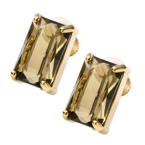多面カットを施した大人色な大粒クリスタルガラスが耳元で煌めくイヤリング/ピアス。縦長のスクエア型とゴールドメタルの4本の爪が輝きをより一層引き立ててくれます。シンプルコーデの差し色にオススメです◎