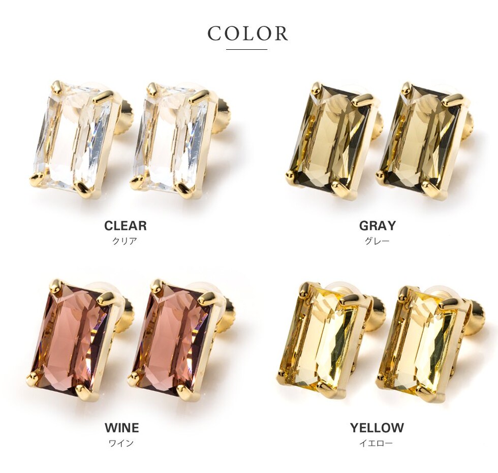 イヤリング ピアス 金属アレルギー ニッケルフリー レディース ネジ式 大粒ビジュー ガラス 多面カット スクエア スタッド メタル イエロー cream dot ゆうパケット [ワイン_イヤリング]