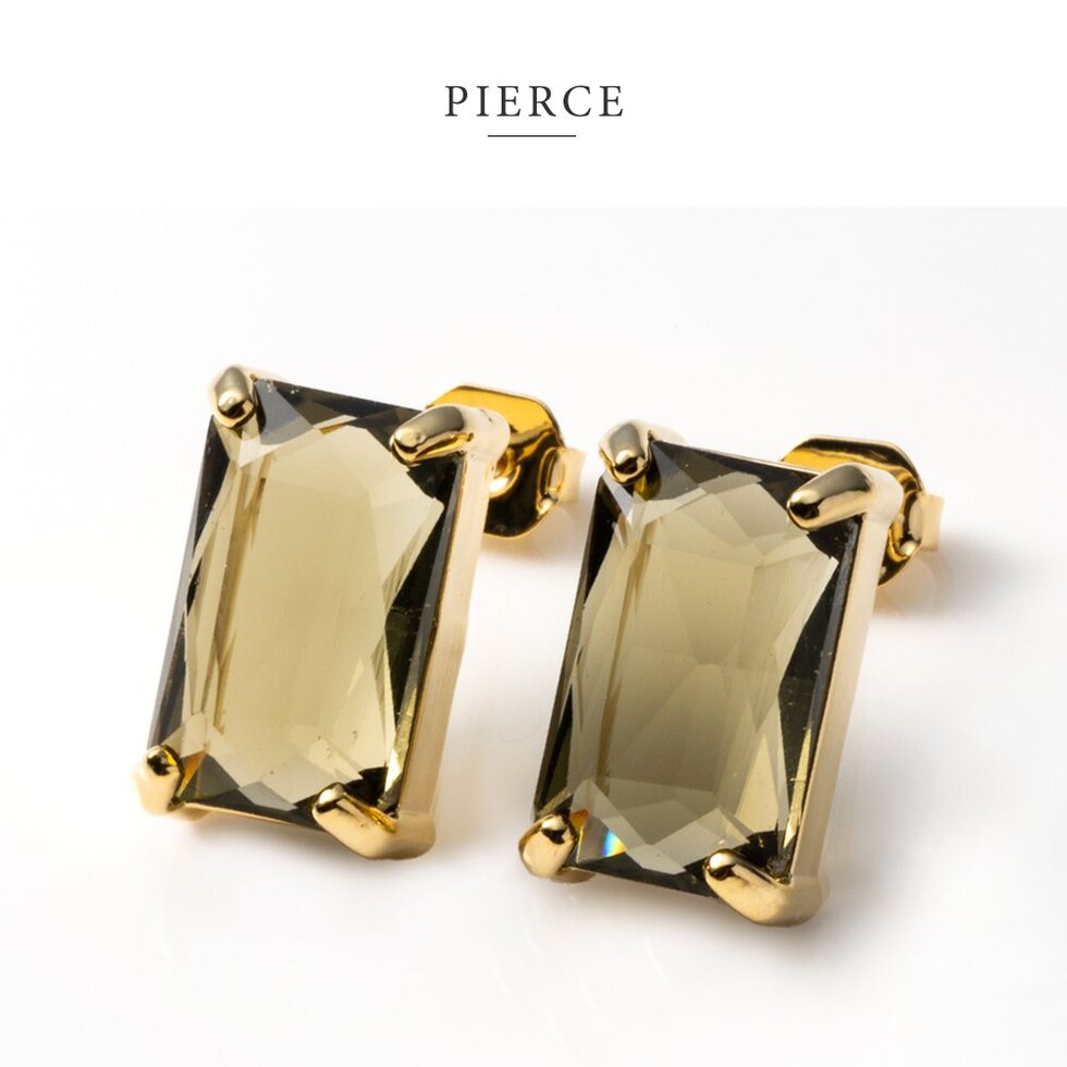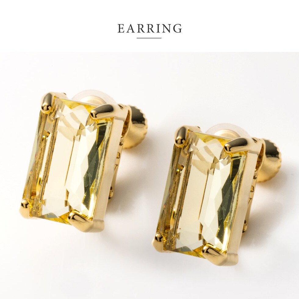 多面カットを施した大人色な大粒クリスタルガラスが耳元で煌めくイヤリング/ピアス。縦長のスクエア型とゴールドメタルの4本の爪が輝きをより一層引き立ててくれます。シンプルコーデの差し色にオススメです◎