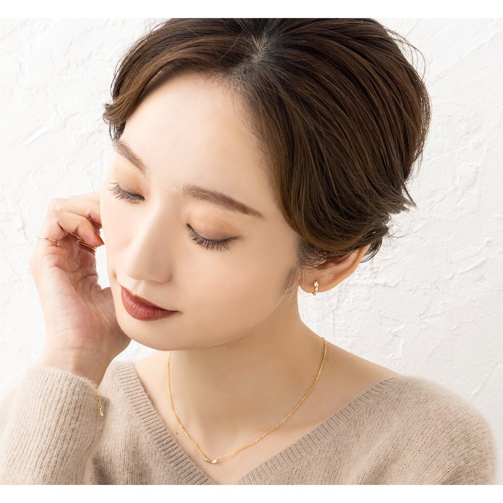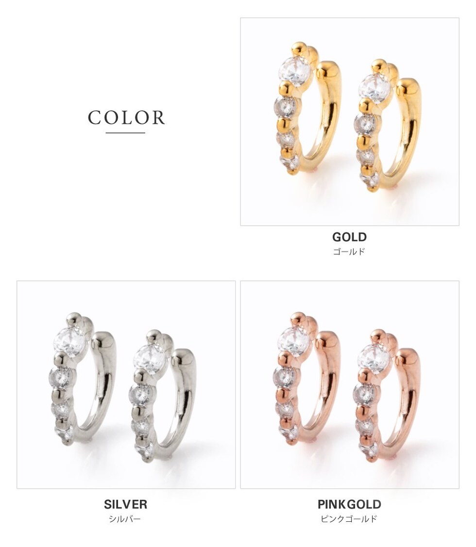 カフイヤリング 金属アレルギー ニッケルフリー レディース カフ 見え 2way イヤーカフ イヤカフ フープ キュービックジルコニア ビジュー サイズ調整 両耳用 cream dot ゆうパケット [ピンクゴールド_フリーサイズ]