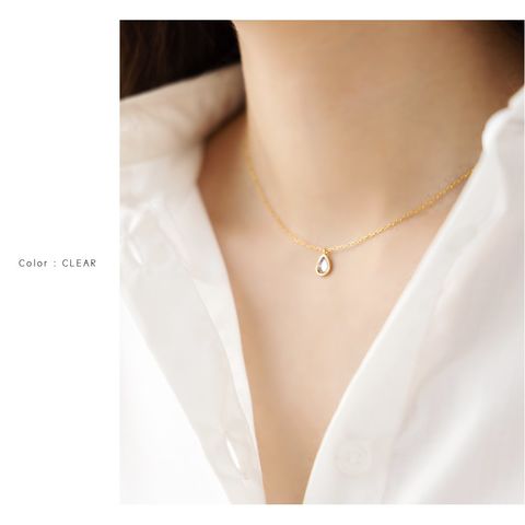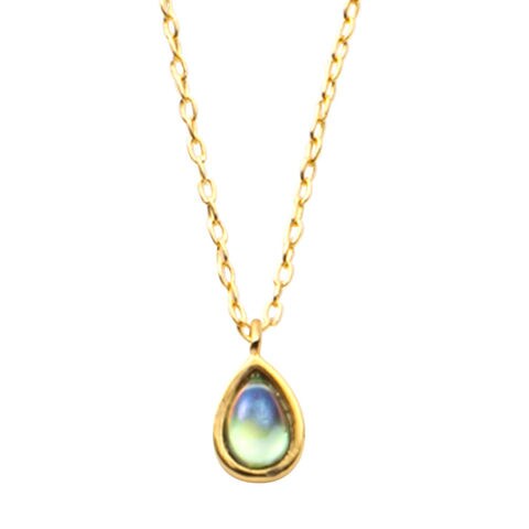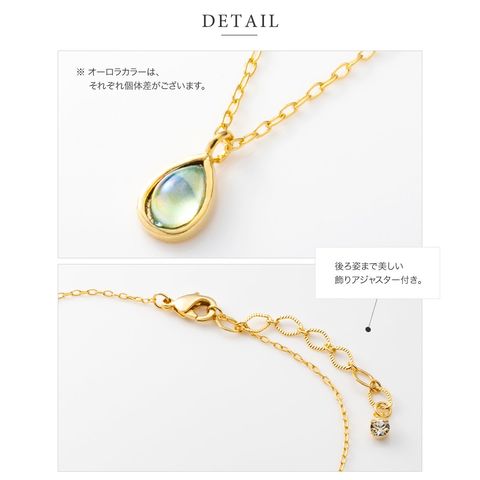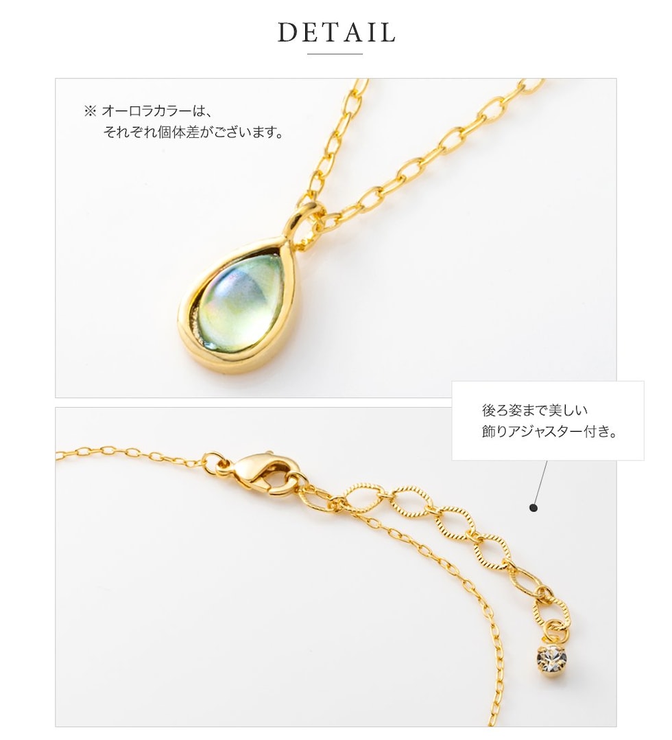 オーロラカラーの華奢ドロップネックレス。オーロラを縁取るゴールドフレームと主張しすぎないミニマムなサイジングで、遊び心溢れる大人っぽいデコルテを演出。デイリーアイテムにプラスして◎