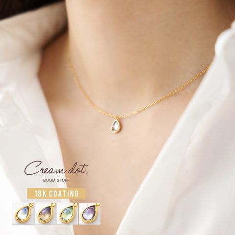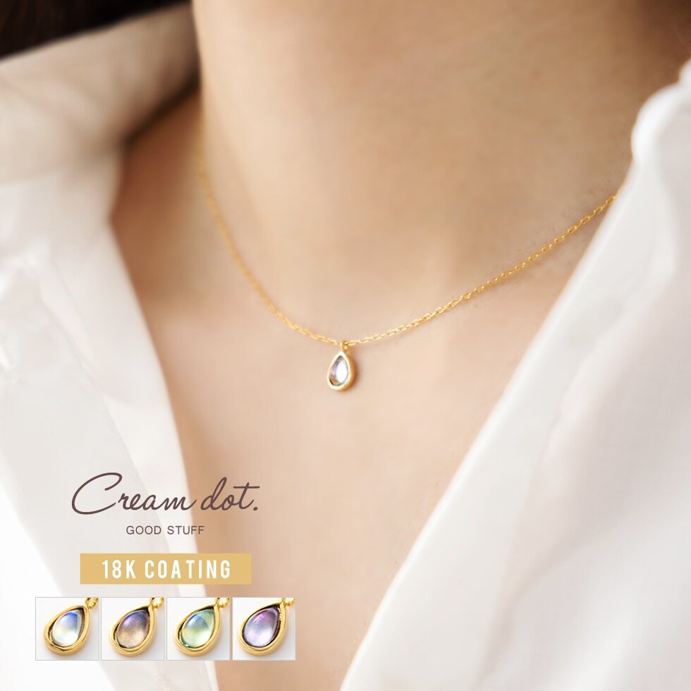 ネックレス 金属アレルギー ニッケルフリー レディース ショート チェーン オーロラカラー ドロップ 小さめ ミニマム cream dot ゆうパケット [グリーン_ワンサイズ]