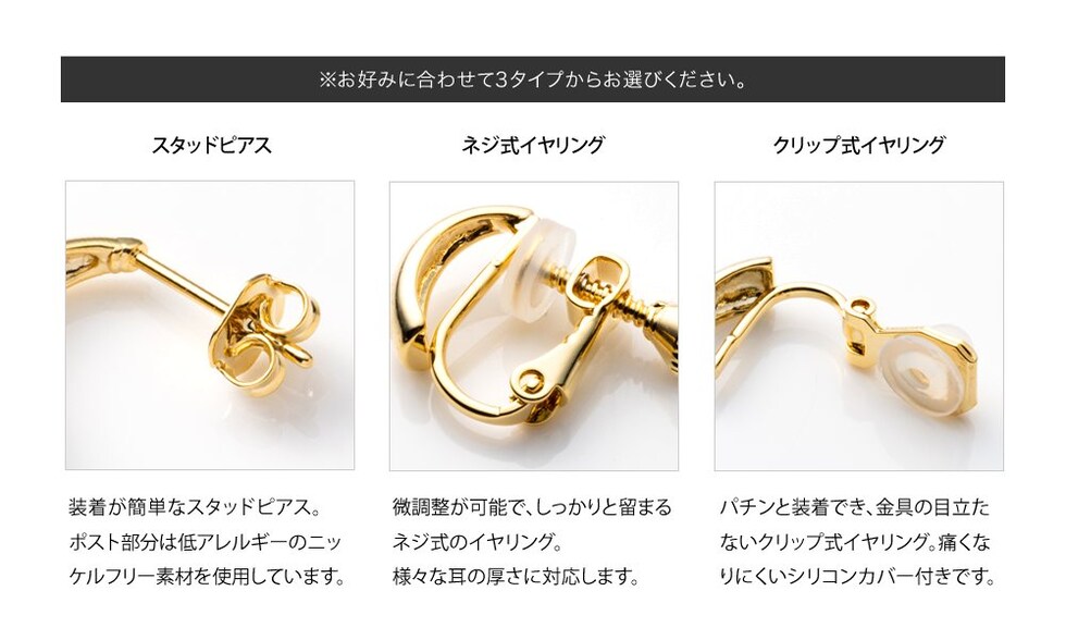 ピアス イヤリング 金属アレルギー ニッケルフリー レディース シリコンカバー ネジ式 クリップ式 スタッド ドロップ メタル cream dot ゆうパケット [シルバー_ピアス]
