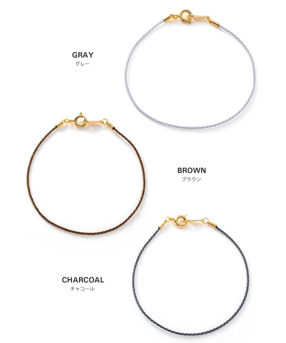 ブレスレット 金属アレルギー ニッケルフリー レディース 細い ロープ風 重ねづけ スリムコード チャコール cream dot ゆうパケット [チャコール_ワンサイズ]