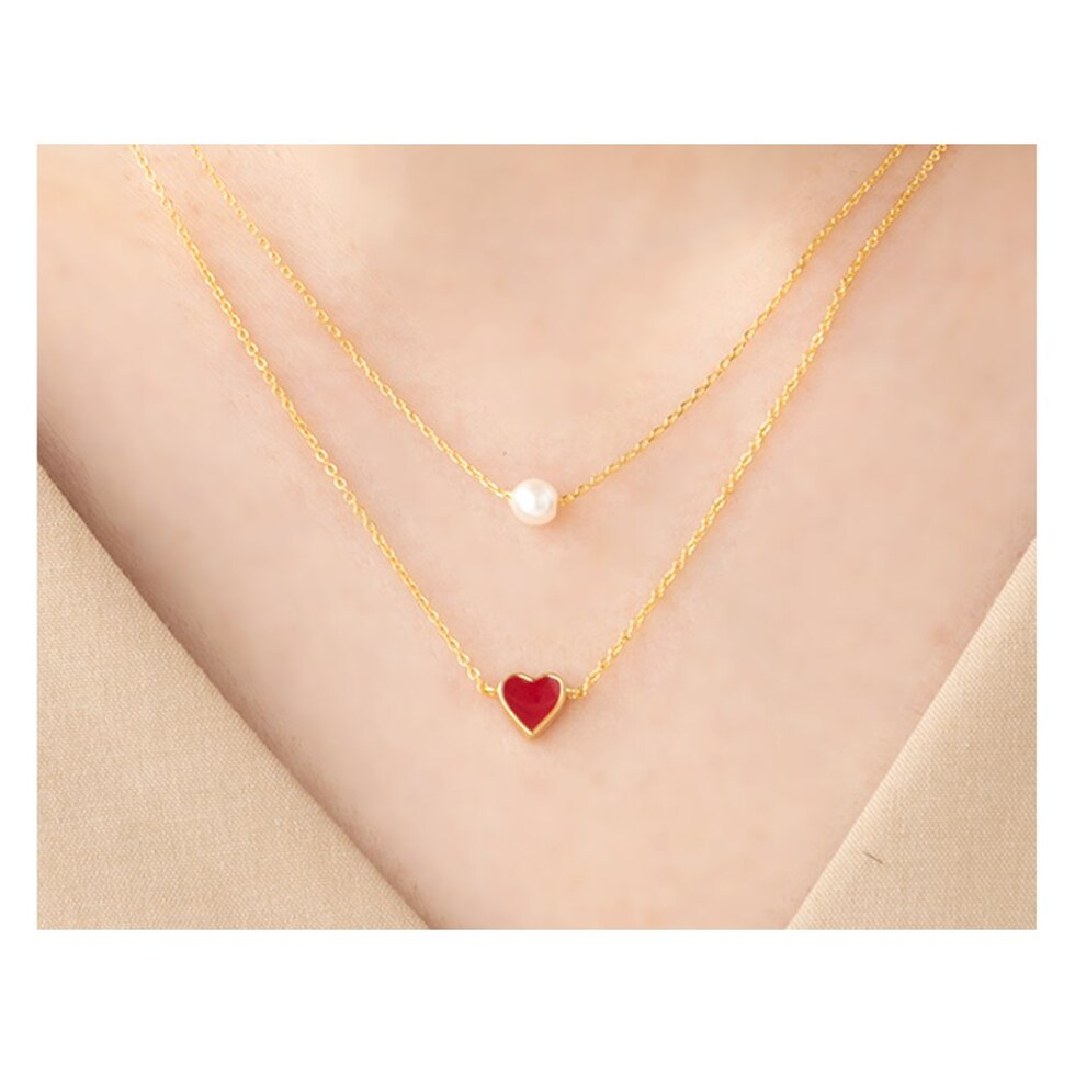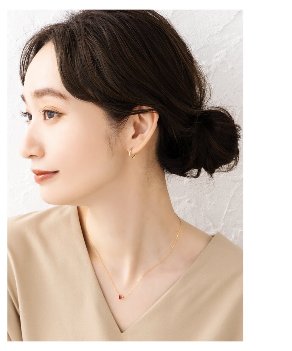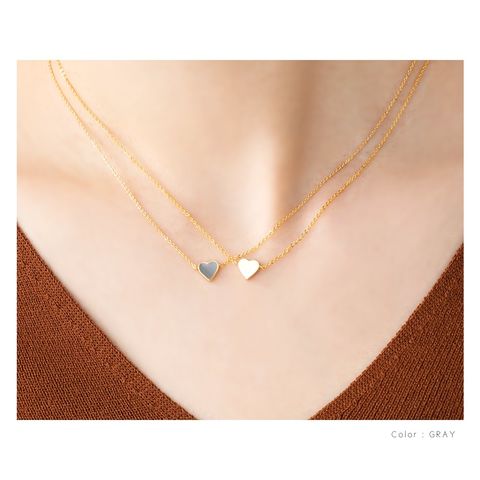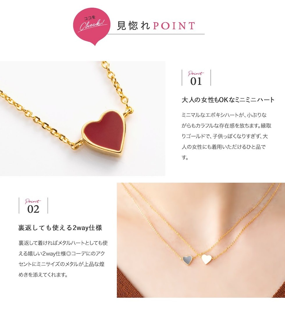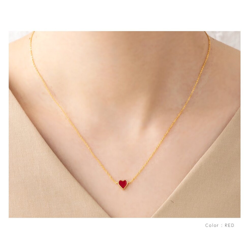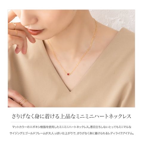 マットカラーのエポキシ樹脂を使用したミニミニハートネックレス。悪目立ちしないとってもミニマルなサイジングとゴールドフレームが大人っぽい仕上がりで、さりげなく身に着けられるレディライクアイテム。