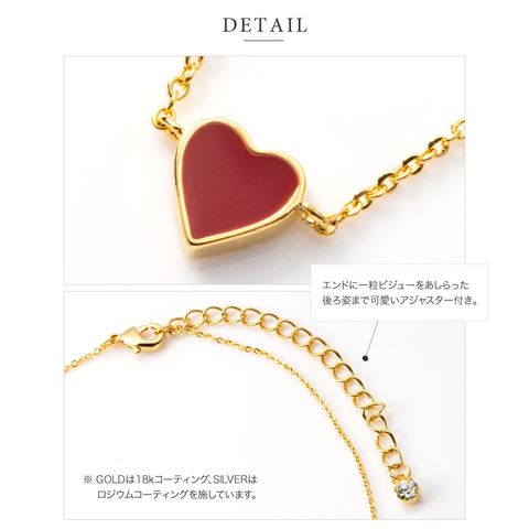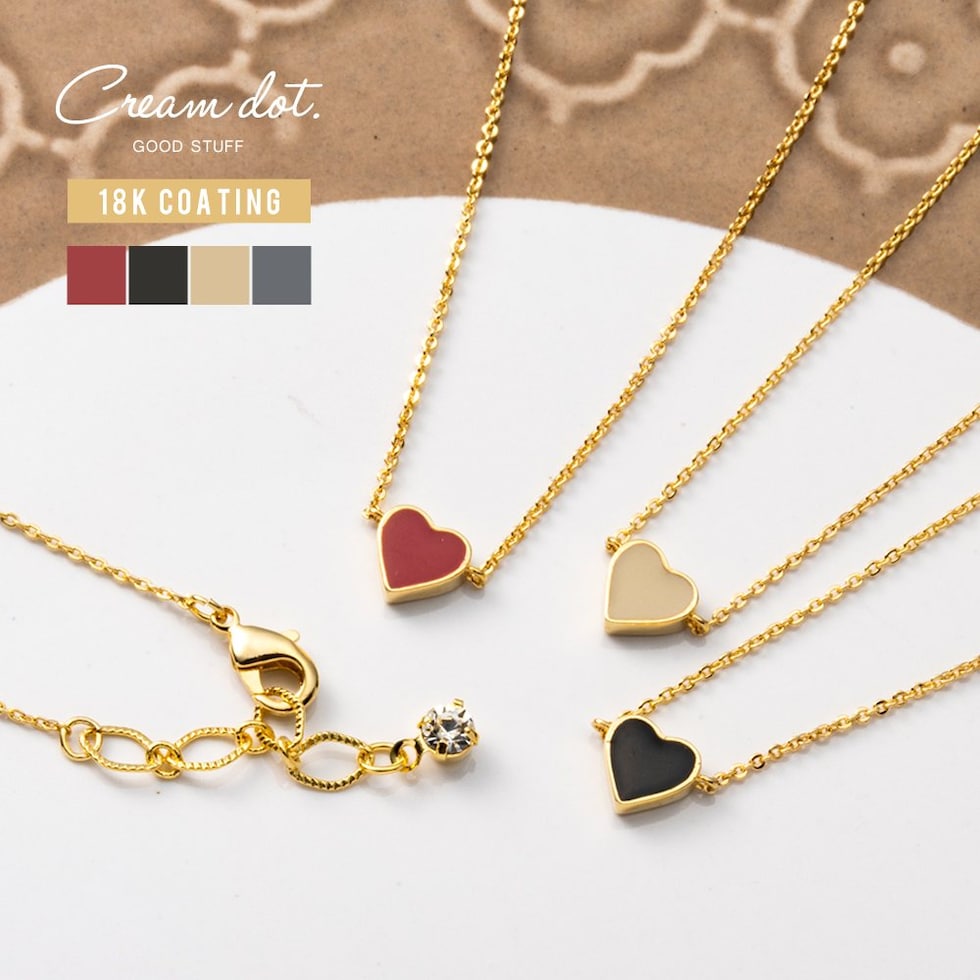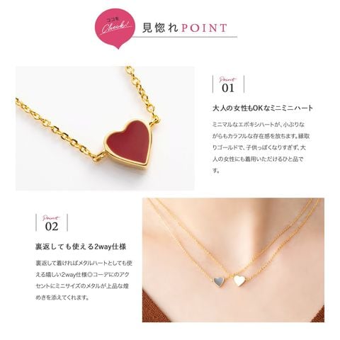 ネックレス 金属アレルギー ニッケルフリー レディース ショート チェーン ハート エポキシ ミニ 小さい 小さめ 小ぶり 2way リバーシブル グレー cream dot ゆうパケット [レッド_ワンサイズ]